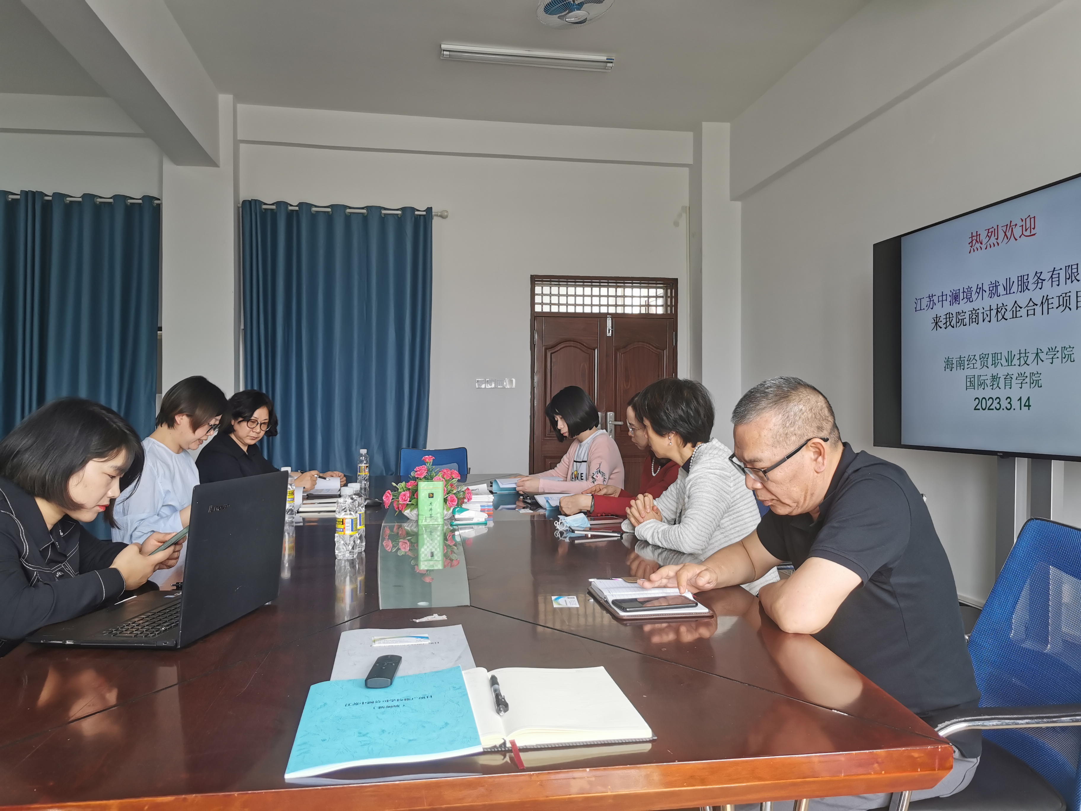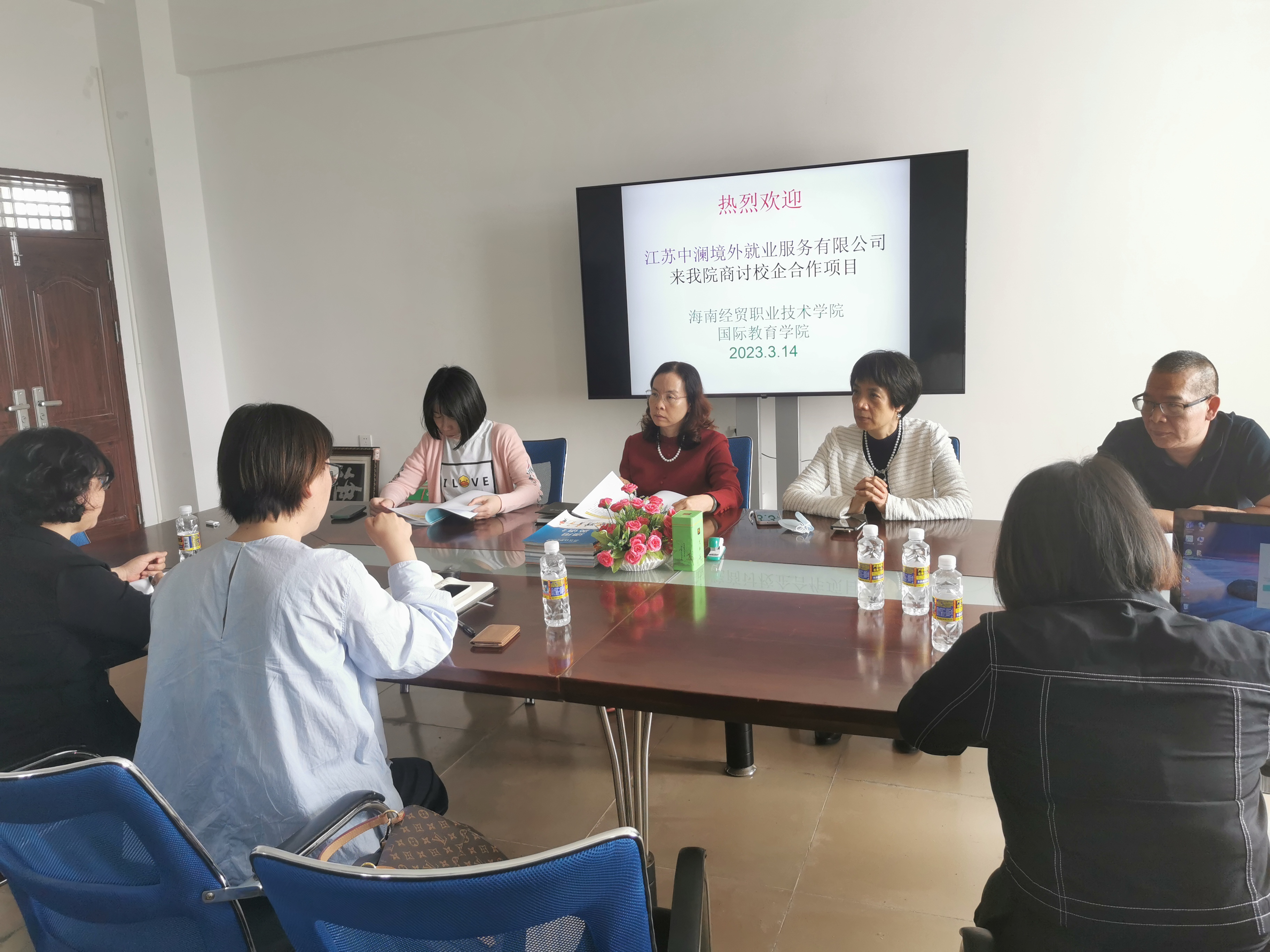 为推动产学研协同创新,寻求校企合作共赢、共谋发展的良好局面,2023年3月14日下午,江苏中澜境外就业服务有限公司徐丽经理、校企项目部经理徐群、高茜玲等一行应邀莅临公海gh555000aa线路检测座谈校企合作。公海gh555000aa线路检测刘莉副经理、郑艳副书记、学工办黄银亮老师、应用日语专业负责人王耀义老师和商务英语专业负责人黄桂凤老师参加了座谈会。