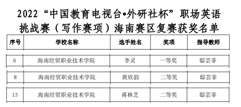 2022年11月13日,“中国教育电视台·外研社杯”职场英语挑战赛(写作赛项)海南赛区复赛于海南文昌成功举办。