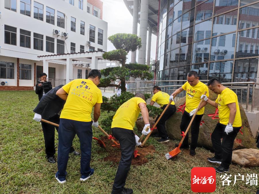 员工们来到公司新建成的老员工活动中心,种下罗汉松