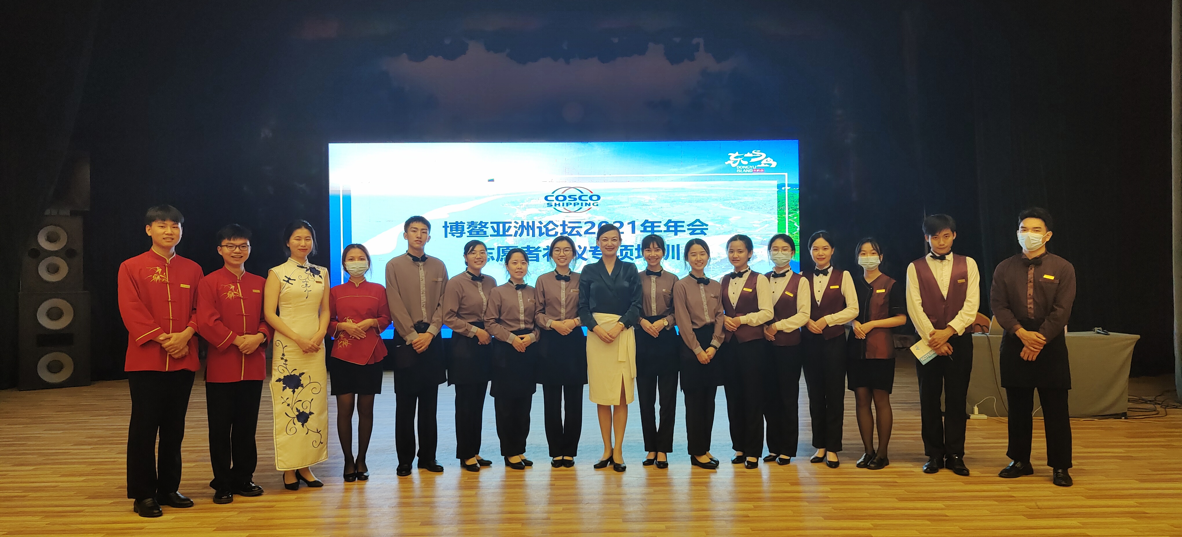2021博鳌亚洲论坛年会于4月18~21日在海南博鳌举行。经严格选拔和审核,公海gh555000aa线路检测商务英语专业30名老员工志愿者脱颖而出,前往博鳌亚洲论坛大酒店、博鳌亚洲论坛东屿岛大酒店和博鳌金海岸大酒店接受礼宾引导、酒店客房及餐饮接待等培训,为中外嘉宾提供细致周到的服务做好准备。