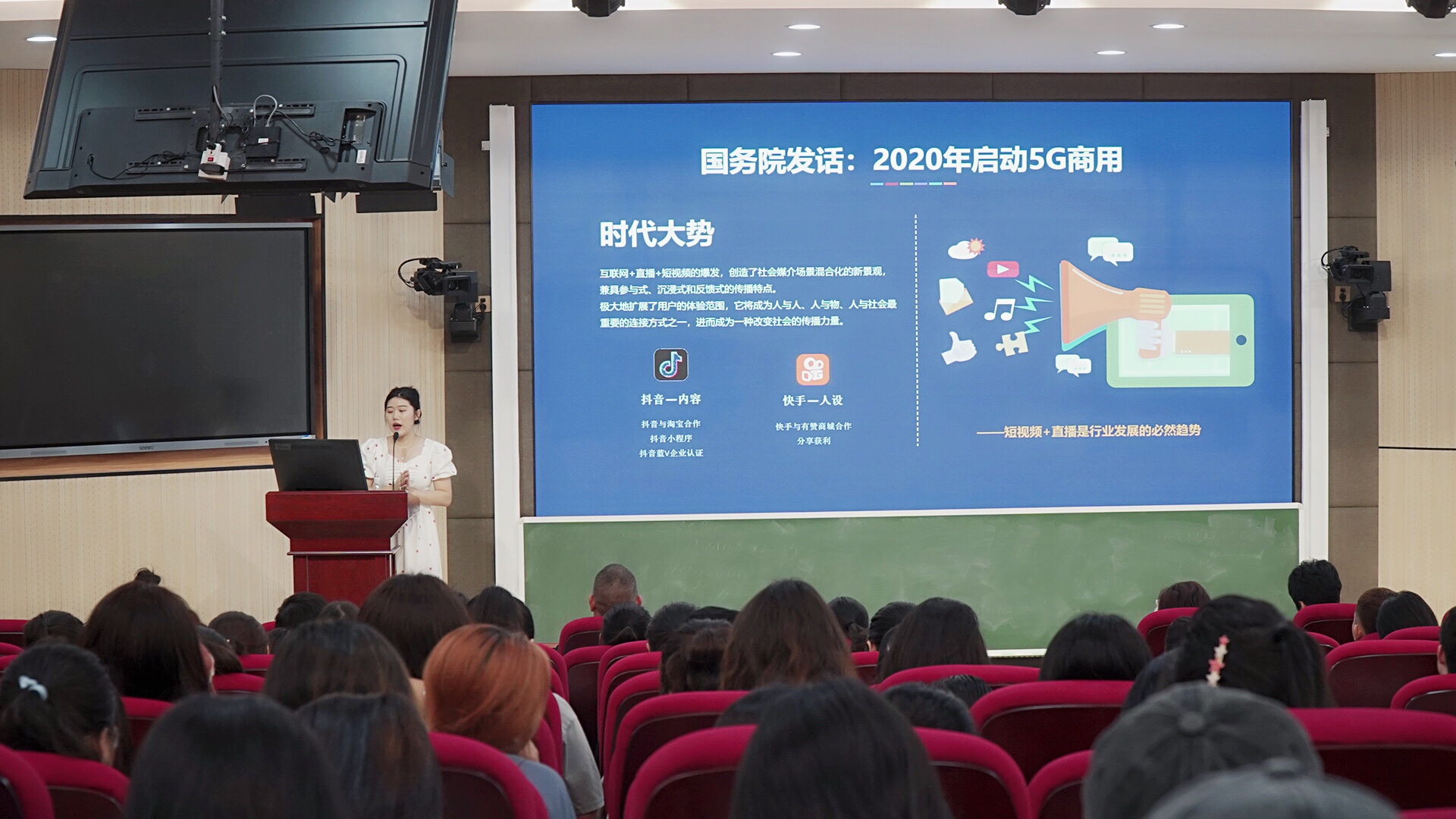 根据商务英语专业建设及课程学习需要,公海gh555000aa线路检测于2021年3月30日下午邀请了来自海南花米云服科技有限公司的专业导师黄宏、潘禹宁老师来公司为19级全体员工举办一场直播带货的专题讲座。黄宏、潘禹宁老师拥有丰富的短视频策划运营和管理服务经验,负责抖音运营和微博内容运营,专注于短视频运营课程方案研究,擅长进行培训及能力提升,输出行业类自媒体运营数据与经验方法论。此次讲座,两位老师与大家分享了直播带货+短视频行业分析实操。两位老师的讲解思路清晰、声情并茂、引人入胜,讲座内容具有很强的实用性和可操作性。本次讲座作为课程学习的拓展,为本专业实践教学提供了非常有价值的经验和实践体验,为同学们打开了一扇通往创业创新之门。两个小时的讲座让同学们受益匪浅,为公海gh555000aa线路检测的专业建设带来了添砖加瓦的效果。