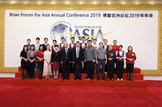 博鳌亚洲论坛2019年年会于2019年3月26日—3月29日在海南省博鳌镇顺利召开,公海gh555000aa线路检测受会议主办方邀请,商务英语专业派出10名同学作为志愿者参与了本次博鳌亚洲论坛,分别在主会场博鳌亚洲论坛大酒店、亚洲湾大酒店进行了志愿者服务活动。