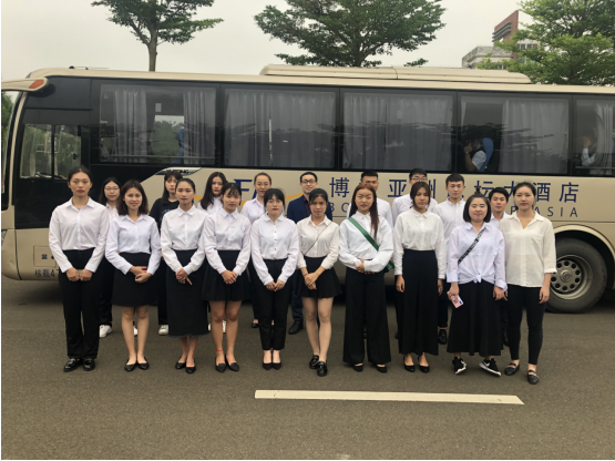2019年3月30日,公海gh555000aa线路检测经理张春玲、副经理兼党总支临时负责人于勇、英语专业负责人刘莉老师、负责就业工作的黄银亮老师前往博鳌亚洲论坛看望员工,并与员工以及酒店领导合影留念。