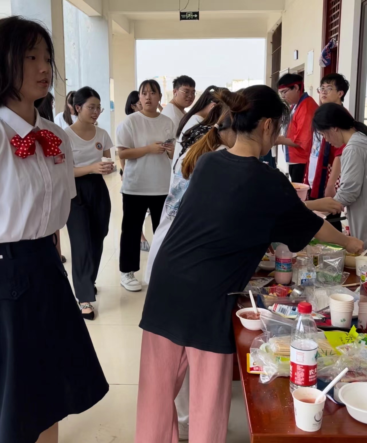 首先,同学们在1-614教室外搭建了日式刨冰摊位,摊位分为两个,一是传统刨冰摊位、一是果味刨冰摊位。在大家的努力和谷田老师的指导之下,刨冰志愿者们终于做出了酸甜适中、口味独特丰富、冰爽怡人的刨冰。炎炎夏日,在刨冰小组的同学们的吆喝声中,许多来参观体验日本文化的老师与员工光顾了我们的日式刨冰摊位,口味繁多的刨冰很快便供不应求,大家由起初的动作生疏逐渐转变成了配合默契。在忙碌之中,收获了众人的认可与赞美,更拥有了劳动的快乐。