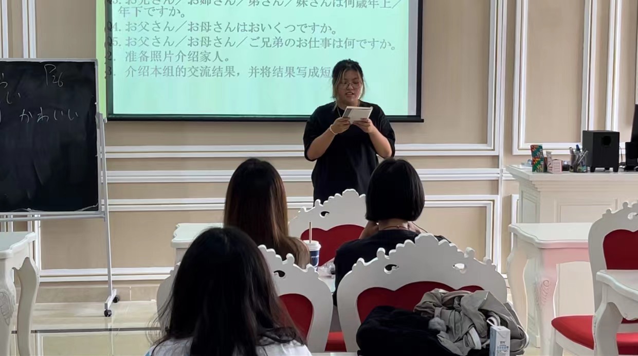 2023年11月10日上午,23级日语2班在第一教学楼613教室,开展了《我和我的家人》课堂分享会。由基础日语课黄金玉老师带领23级应用日语2班的员工以及22级的学长们参与课堂分享会。专业负责人王耀义老师,企业导师陈明柳老师、韩烨老师、班主任王进老师参与了本次日语课堂腾讯会议线上线下融合课堂分享。