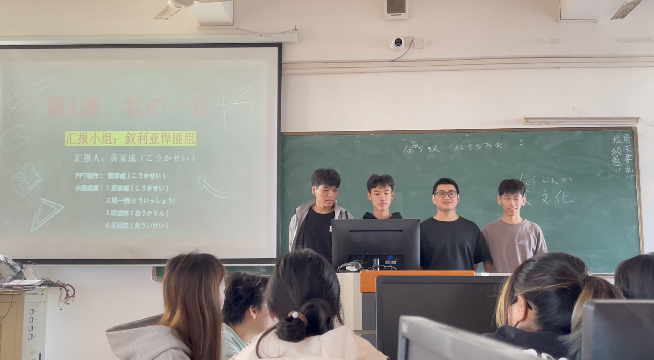 (王俊杰、王衍钦在日语语法课上发表。)
