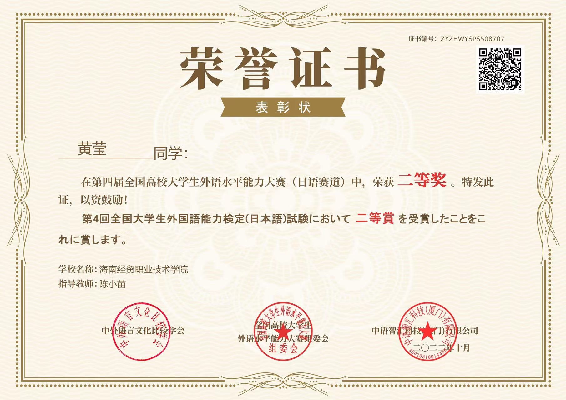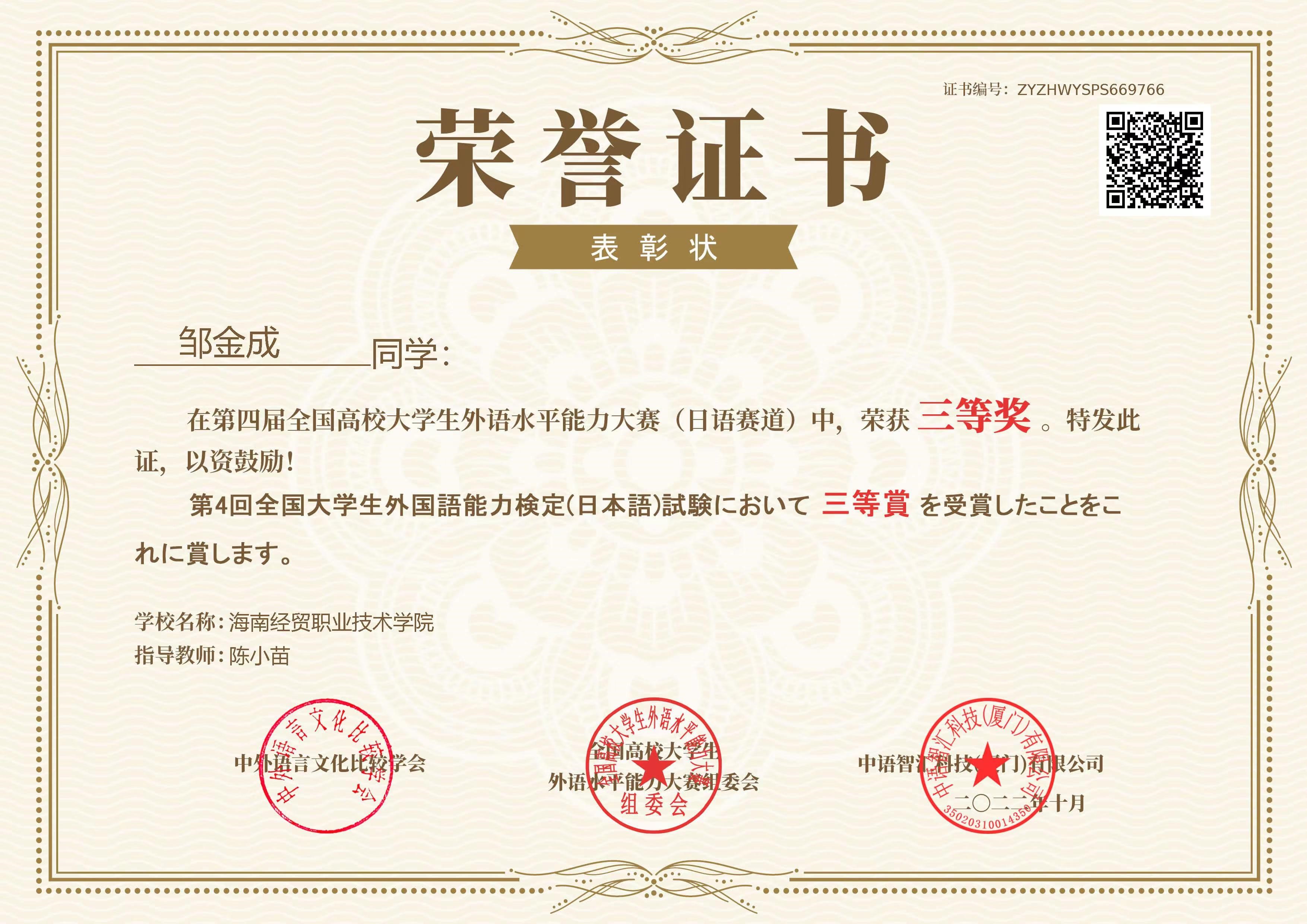 日语赛道,公司员工喜获二等奖1人,三等奖3人。指导教师:陈小苗。