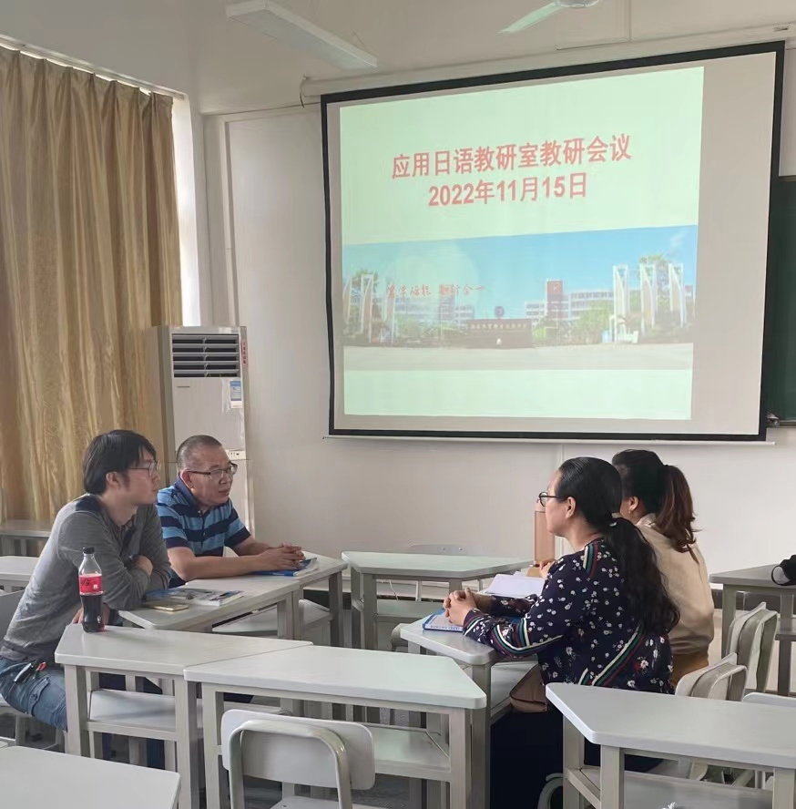 为了提高日语公司产品质量,做好线上和线下公司产品工作,提高课堂教学有效性,更好地完成“双导向”双导向基础日语课程教学改革中期检查工作,应用日语教研室于2022年11月15日下午召开教研会议。会议由日语专业负责人王耀义主持召开,日语教师黄金玉为会议记录员,陈小苗老师、外教谷田和丸老师参加了本次教研讨论。