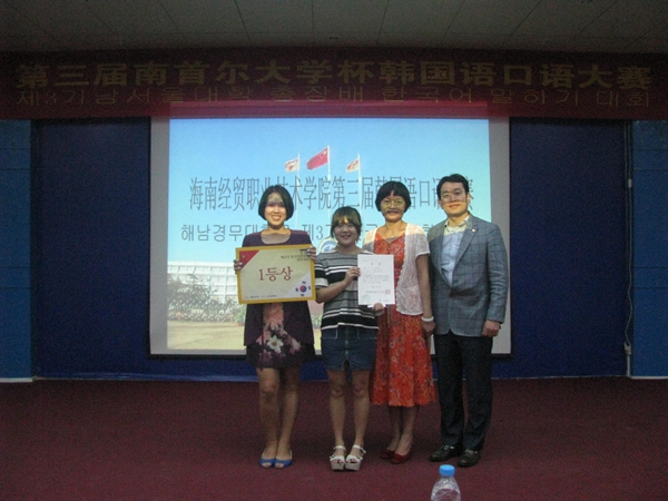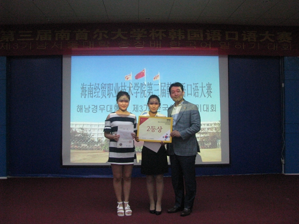 经过激烈角逐,公海gh555000aa线路检测韩语班张梦梦同学获得比赛一等奖,她还将得到南首尔大学1000元人民币奖学金。二、三等奖获得者也将得到南首尔大学的奖学金。