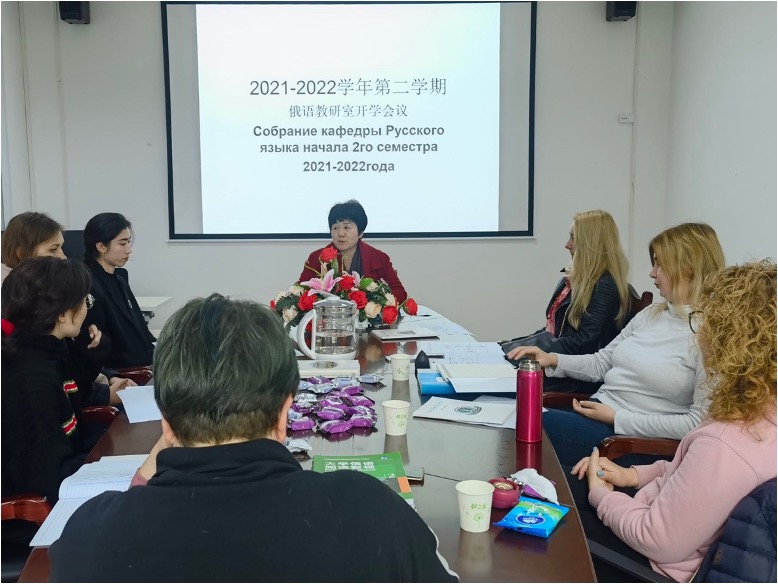 2022年2月25日上午十点,应用俄语专业教研室全体中俄教师召开了2021-2022学年第二学期第一次会议,会上专业负责人部署了本学期工作任务。大家就 “双导向”课堂教学改革阐述各自意见和看法,对引进教材进行了商讨并达成共识。最后,专业负责人鼓励大家集体备课,相互学习,取长补短,并再次强调了公司的教学管理规则,要求教师们一定按照规定严格要求自己,认认真真备课,注意课堂管理,全方位关心员工,杜绝教学事故、按时提交教学资料。