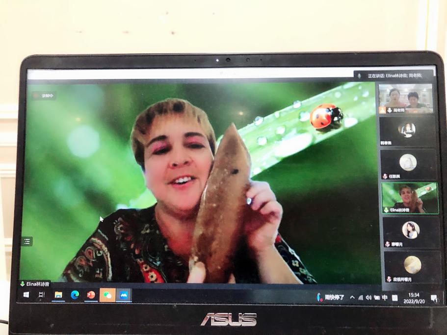 随后,两位外教向全体新生表达了诚挚的问候,提出了殷切的期许。19俄语班员工张琪也带来了她的俄罗斯职工活的视频,20级俄语班廖馨月学姐在线连麦,分享了她的老员工活。外教ELINA 老师也向大家分享了俄罗斯美食文化,让同学们充分感受到了俄罗斯的独特民族文化,也将会议气氛推到了最高点。