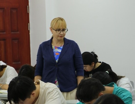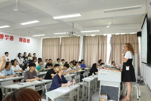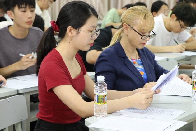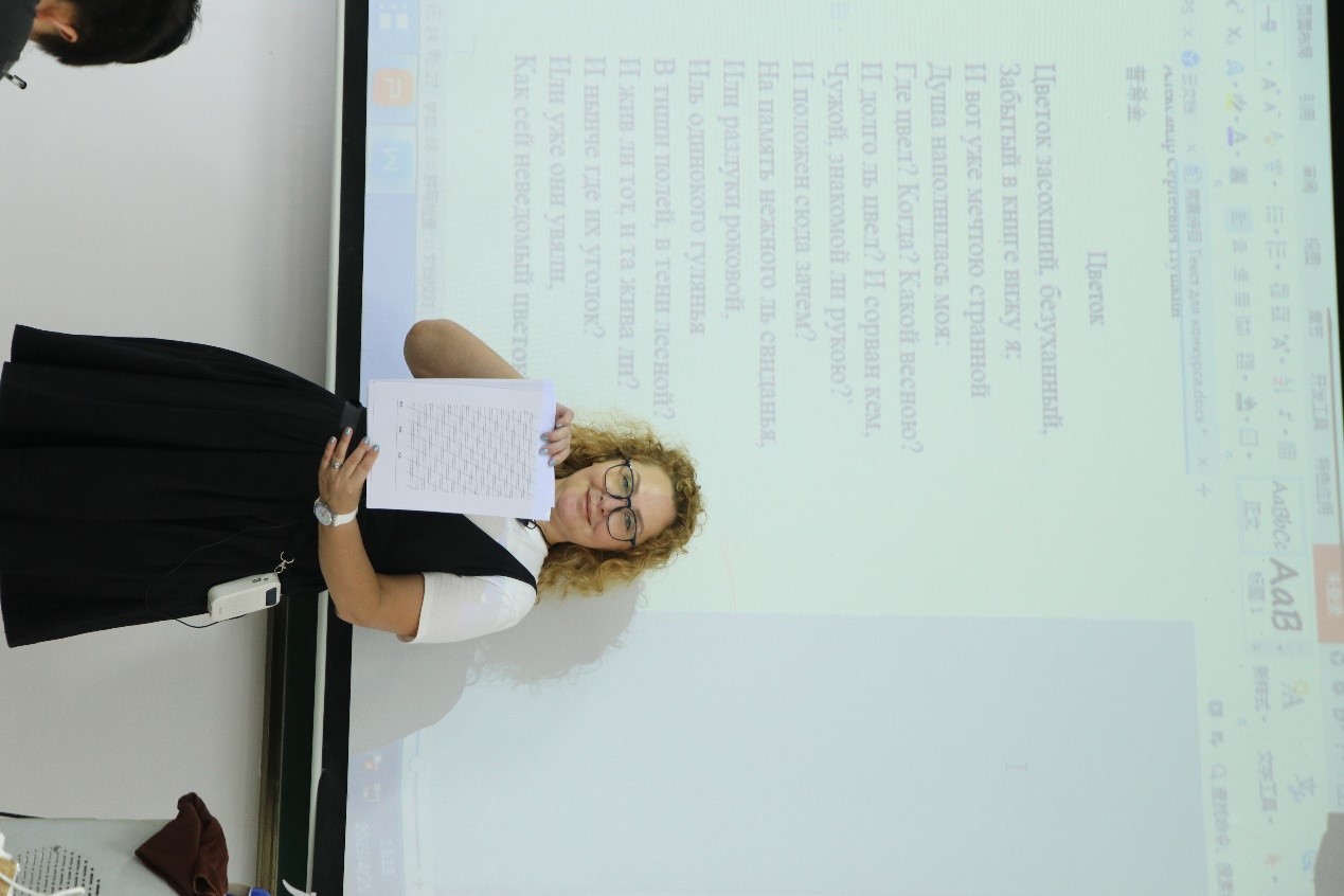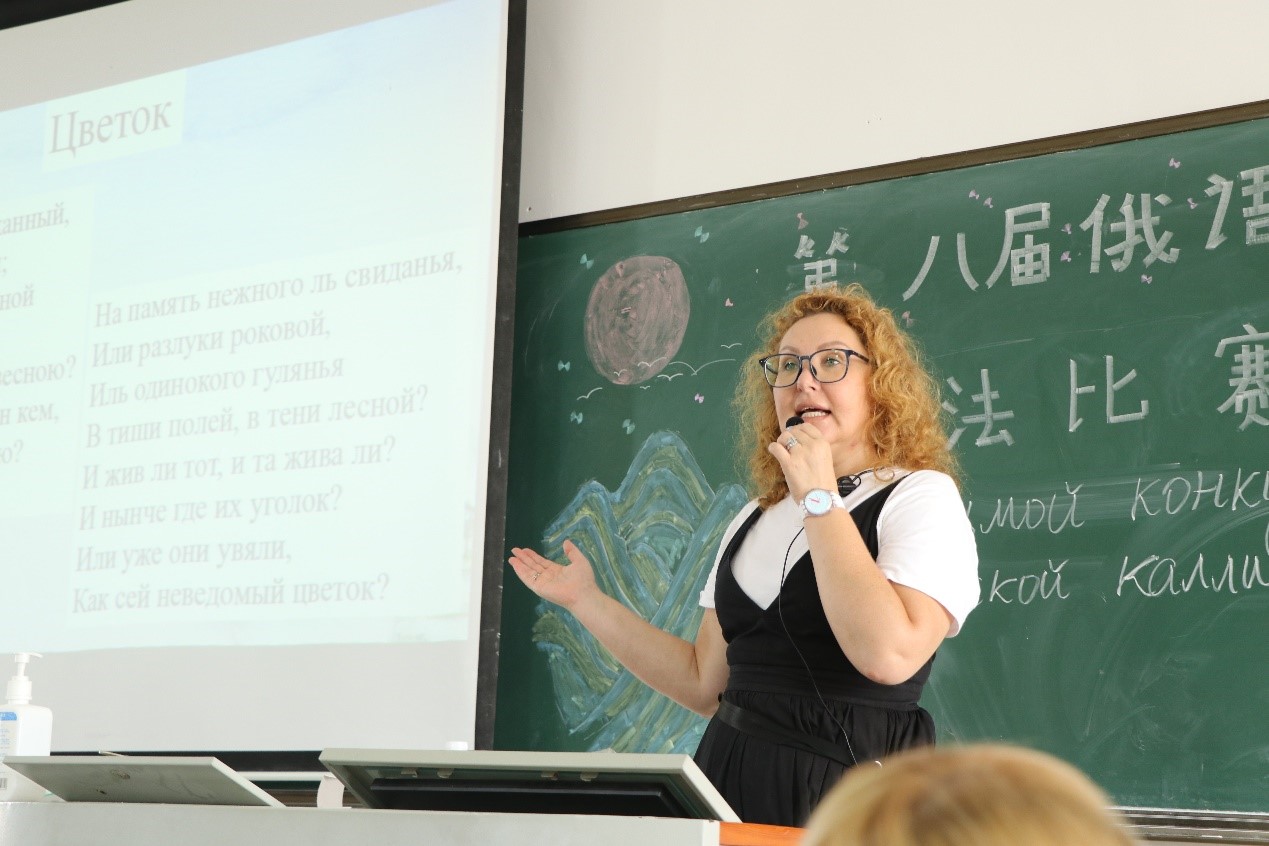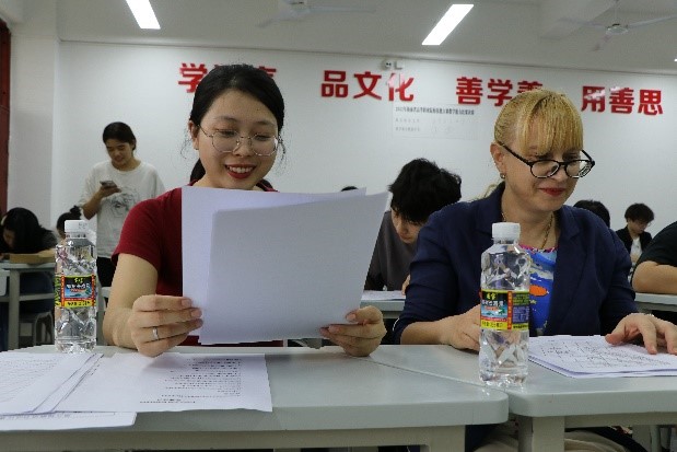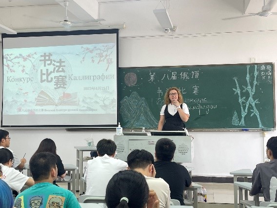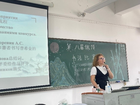 比赛开始前,外教Marina为员工们详细讲解了书法比赛的流程与比赛规则,带领员工欣赏诗朗诵《