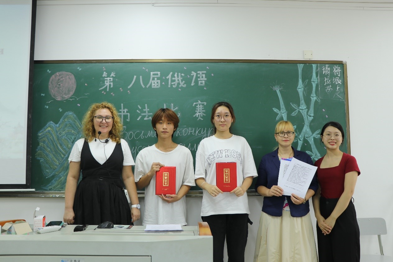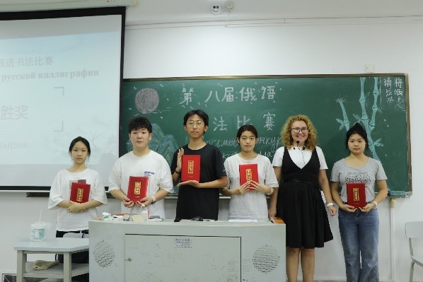 活动的最后,由几位评委颁发奖状,鲜红的证书饱含着赞赏与期待,期待孩子们能坚持写好规范的俄语,让正确、美观的书写成为一种习惯。