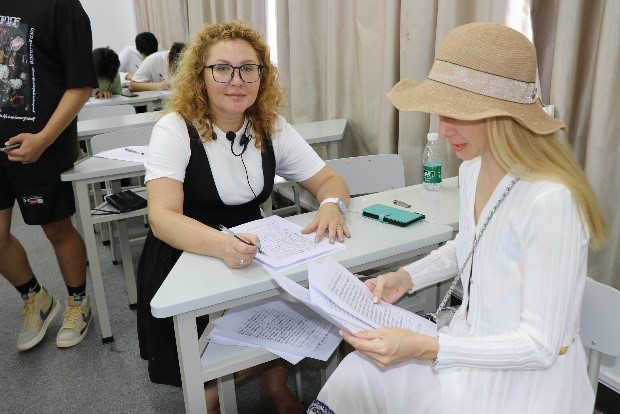 评委Irina、Marina、陈洁千子、Oksana对本次比赛作品开展了评比工作,过程中发现,许多同学字写的非常好看,思路新颖,设计独特,但是仍存在大小写不分、ч-г不分、ж-ш不分、笔误等各种问题,这也对今后的教学工作带来了极大的启发。
