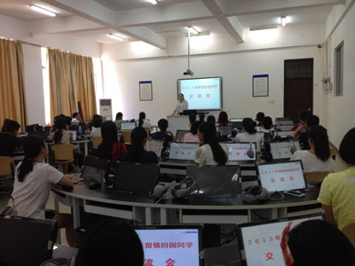 2015年6月15日,星期一,我们应用外语系俄语专业的全体师生齐聚一堂。大一、大二和大三的全都有。主题为12俄语专业留俄归来的学长和学姐们和我们交流他们这一年在国外留学的生活及学习心得,传授留学经验,分享国外留学的趣事和给即将迈出国门留学的同学的建议。。。。。。