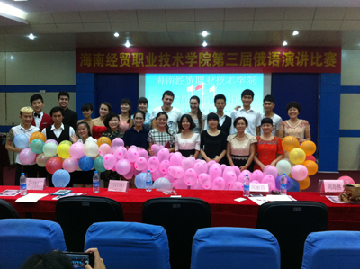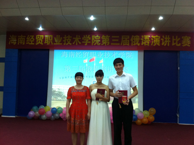 俄语专业教师及外籍教师作为评委应邀出席比赛。经过初赛、复赛的几轮选拔与评比,共有十名同学进入决赛。整场比赛分为演讲环节、问答环节及才艺展示环节。应用外语系朱琳书记表示,这样整合起来的内容非常好:“这样使得活动内容充实,丰富而多样。可以看出同学们下了很大的决心,辅导老师也很辛苦,指导了很多。。。这样的相互提高是特别让我们高兴的。”在谈到俄语专业的就业前景时,朱琳书记表示,目前总体来看,俄语专业的就业前景是被非常看好的。博鳌亚洲论坛期间,由俄罗斯副总理带队的30人代表团队就是由公司选拔出的员工作为志愿者来进行服务的。另外,俄语在旅游,外交,娱乐等多行业多领域,都属于抢手专业。而我们公司,正是为员工和社会架起了一座人才输送的桥梁。愿意出国的员工,可以在老师的指导下明晰自己的目标,可以考俄罗斯的大学进行深造,还可以有机会享受到公费留学交换的待遇。这对于员工的专业学习和内涵素质的提高有这极大的益处。