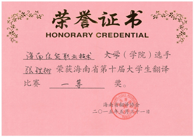 恭喜13俄语专业员工张理娜荣获15年海南省第十届老员工翻译比赛一等奖