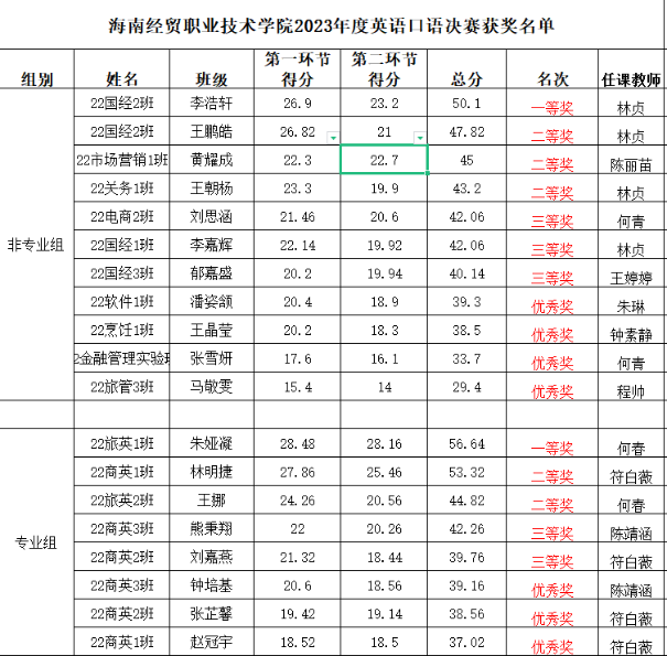 22旅英1班朱娅凝同学与22旅英2班王娜同学分别斩获专业组的一等奖与二等奖!