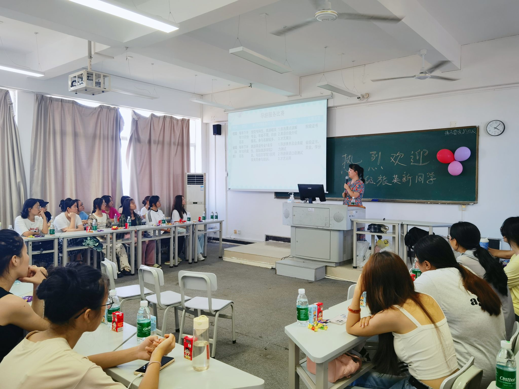 The event began in a warm and harmonious atmosphere, with Ms Li Hongmei affectionately delivering an opening speech to the freshmen. Then, through the lively games "Musical Chairs" and "Back and Forth", Ms Li led the students to quickly break the ice and warm up. She provided a detailed explanation of the unique charm of the Tourism English, including key information such as cultivation goals, employment prospects, curriculum system, and faculty members.