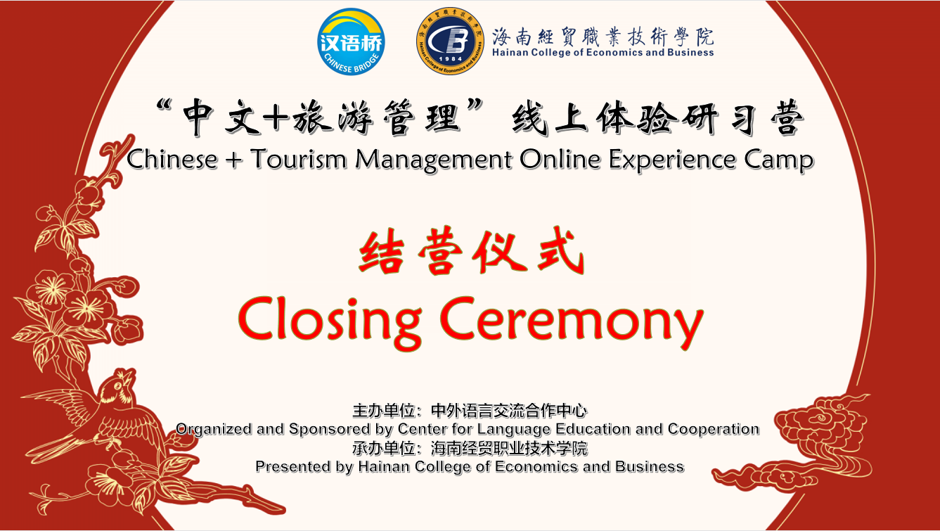 2023年7月8日北京时间16:30,由教育部中外语言交流合作中心主办、公海gh555000aa线路检测承办的2023年“汉语桥”线上交流团组项目:“云游海南”—“中文+酒店管理”线上体验研习营历时8天,顺利结营。