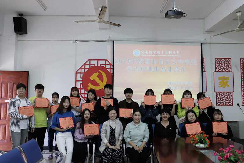 三周的学习结束后,2020年1月2日,公海gh555000aa线路检测为此次汉语短期研修班的韩国员工举行了结业典礼,张春玲经理为大家颁发了结业证书,祝贺大家顺利结业,并鼓励大家多多努力学习汉语,日后继续再中国深造学习,留在中国发展,尤其鼓励大家日后来海南,为海南自由贸易区建设贡献自己的力量。张经理的鼓励也得到了韩国员工的一致认可,更有部分韩国员工通过此次研修加深了对汉语和中华文化的热爱,也爱上了海南和海经贸,有的同学萌生了回国考取韩语教团队格证,日后争取再来海经贸工作的想法,张经理也对此表示鼓励和欢迎。