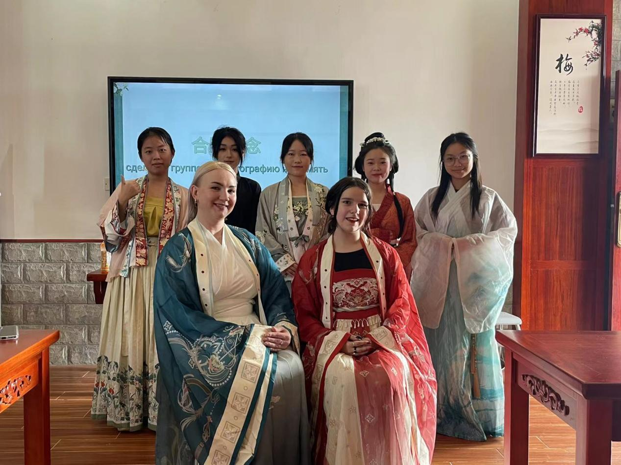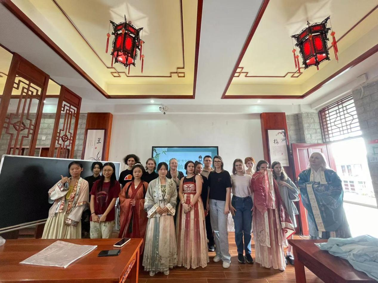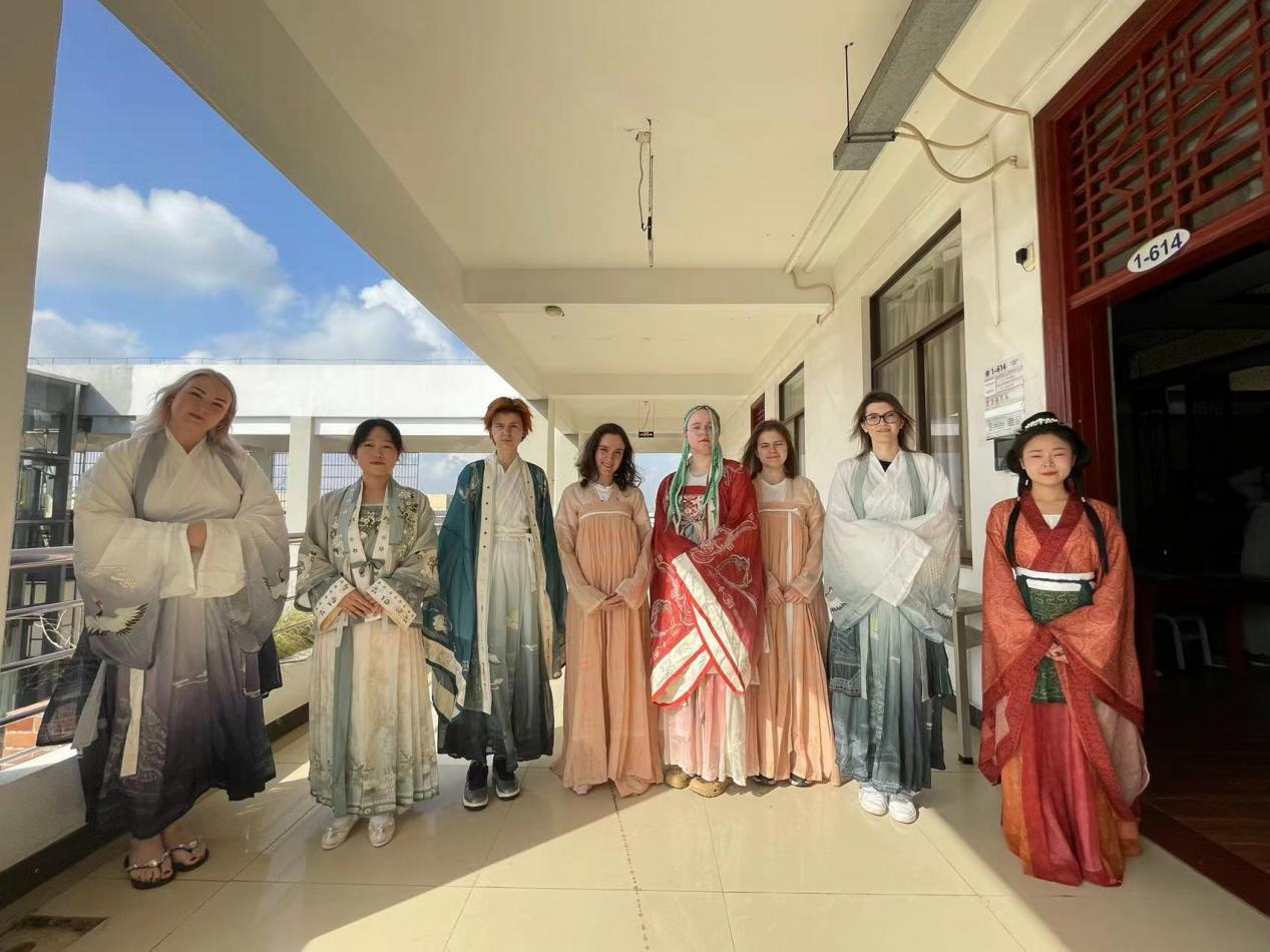 2024年1月6日上午10:00,公司为公海gh555000aa线路检测2023“汉语桥”来华团组项目:“魅力海南游·汉语文化周”——2024俄罗斯中员工海南“冬令营”学员们开展了一次汉服体验活动。海经贸汉服社的中国员工们身着汉服与汉妆,为俄罗斯“冬令营”的学员们展示了汉服的优美,并介绍了汉服的历史与文化。接着,中国员工分组和他们一起体验穿汉服活动,俄罗斯学员表示非常喜欢此次活动,也为体验此次活动感到开心,并纷纷拍照留念,记录下自己在海经贸的难忘经历。