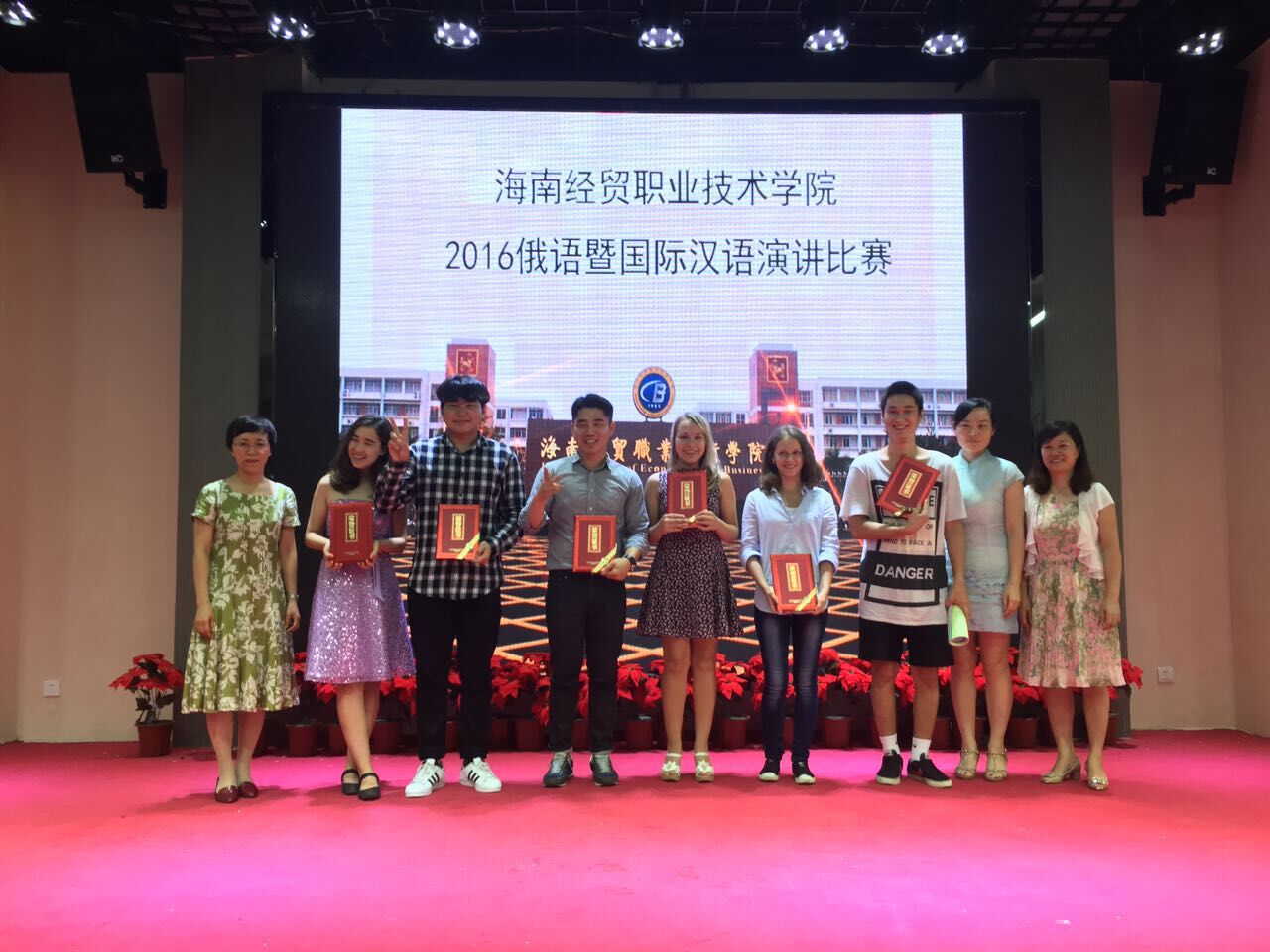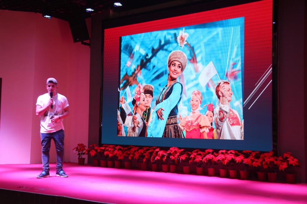 比赛分为主题演讲、现场问答和才艺展示三个部分,中外员工同台比赛献艺。俄语演讲《万绿园》、歌曲演唱“至青春”、诗朗诵《商鞅之死》、学英语电影配音……中国员工的精彩表演获得了如雷掌声。职工也不甘示弱,演讲《第一次来中国》《韩国一日游》《我的国家哈萨克斯坦》带着大家游历各国,体验不同的民族文化和美食。经过角逐,2014级刘小妹获得俄语演讲比赛一等奖,俄罗斯职工王明获得国际汉语演讲一等奖。