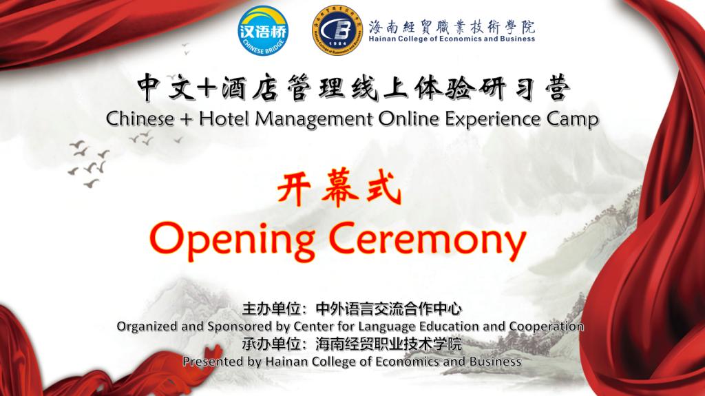 2023年1月2日北京时间19:00,由教育部中外语言交流合作中心主办、公海gh555000aa线路检测承办的2022年“汉语桥”线上团组交流项目——“中文+酒店管理”线上体验研习营线顺利开营。