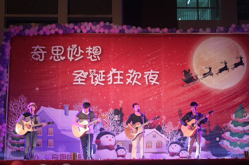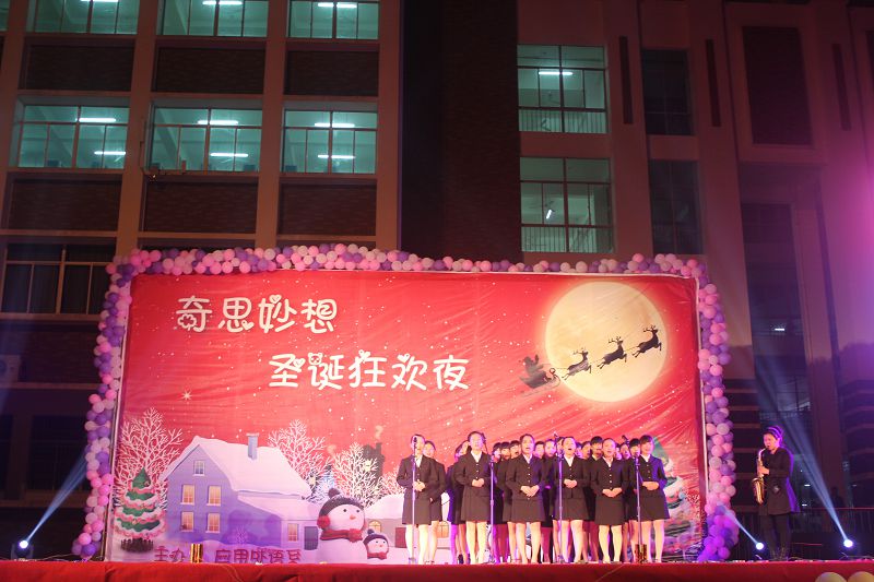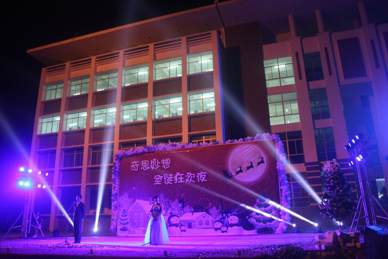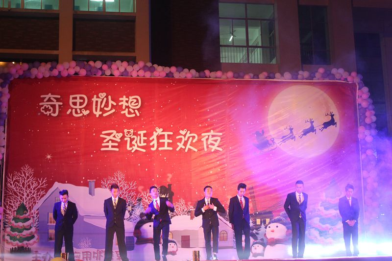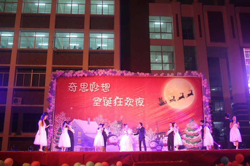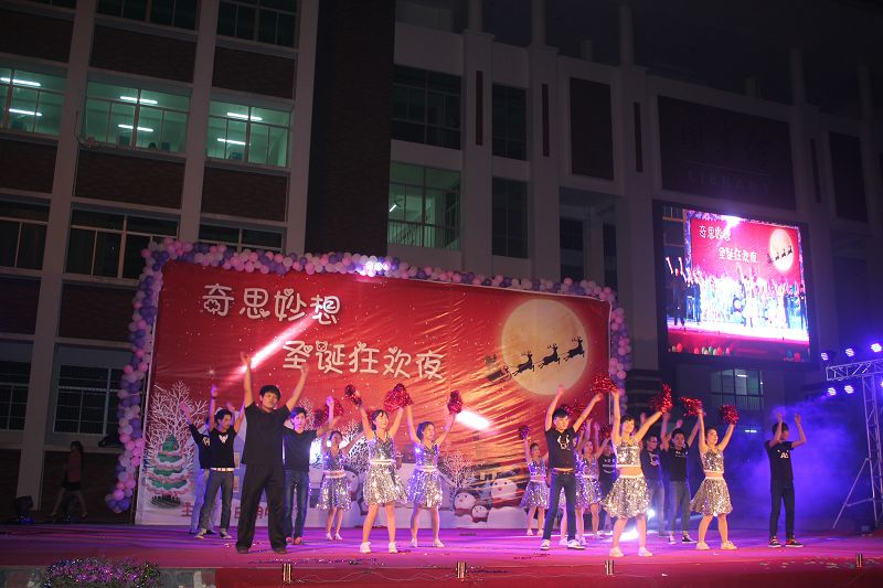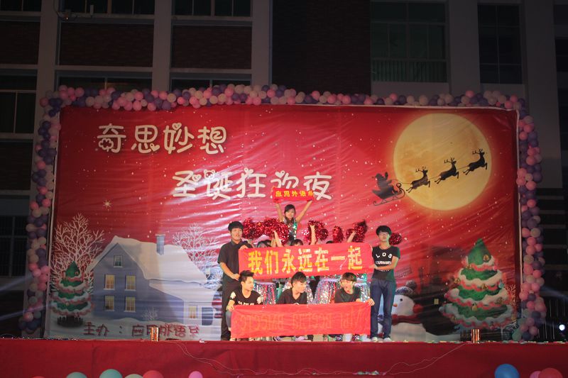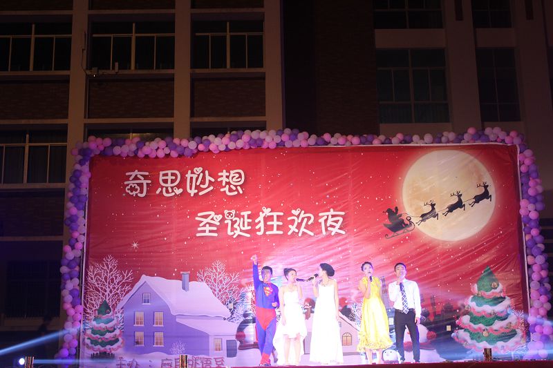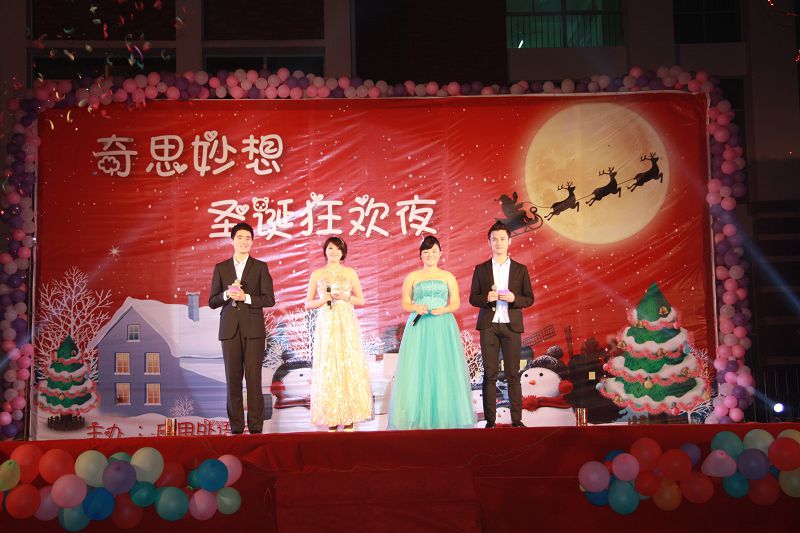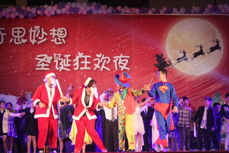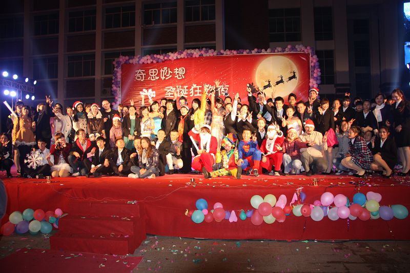 (应用外语系 赵俊贤报道)2013年12月22日晚7点30分,经贸广场上热闹非凡,由应用外语系全体师生筹备一个多月的圣诞晚会在此拉开帷幕。出席本次晚会的领导和嘉宾有公司党委徐畅副书记、应用外语系党总支朱琳书记、应用外语系张春玲主任、学工办副主任郑艳老师、辅导员郭蓉佳老师、代晓明老师以及就业干事李转风老师。