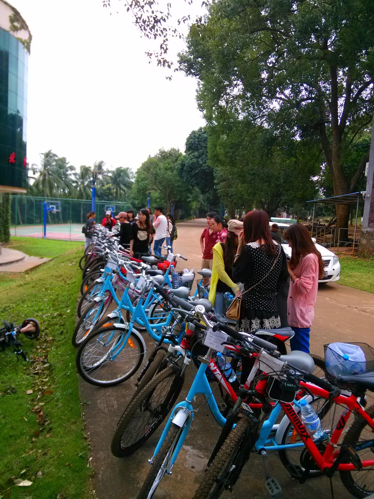 路途中班委沿路照看着同学们,有车过往时提醒着大家注意安全,到达目的地后大家没有立刻找荫凉的地方休息,也没有各自奔向美景,而是把每辆自行车都整齐地停在路边,听从策划者和老师的安排,使得这次活动圆满成功并还受到了当地居民的表扬。耳旁还想起熟悉的那句话“除了美景,我什么也不带走;除了脚印,我什么也不留下。”哦,不对,留下的还有我们的欢声笑语……