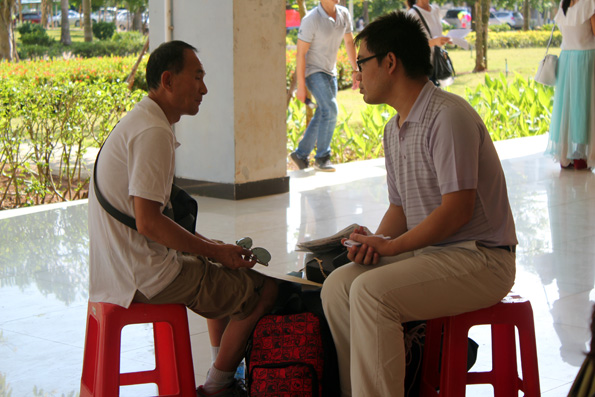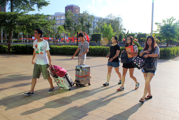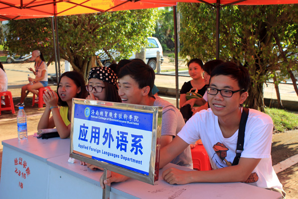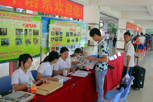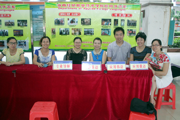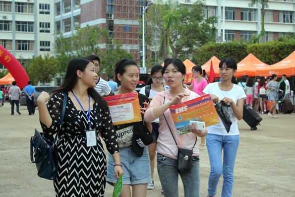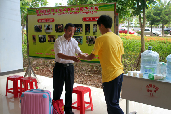 (应用外语系 周艳芳报道)当硕果缀满枝头,当枫叶变黄的时候,又是一届高三学子摆脱学习的重担,迎来自己轻松自由的老员工活……9月6日公海gh555000aa线路检测的校园里,你虽看不到金色的枫叶,你却能看到一张张灿烂的笑脸。海南的季节是没有春夏秋冬之分的,9月的海南虽也进入了秋季,但这里仍然充满了火辣辣的热情。一大早,烈日就当空照,而烈日下有这样一群孩子,他们右手拉着行李,左手提着桶,正在给旁边一脸迷茫的同学讲解的就是应用外语系奔走在前线的同学们,尽管他们都已经满头大汗,但仍热情,耐心的为同学们拿东西,带路,指引他们报道,注册!而有这样一群人们,他们从早上7点就集合,没吃早餐,忍着肚子“咕咕”的抗议就坚守在自己的岗位上,他们认真的为同学们核对录取通知书,办理登记手续,耐心的告诉他们接下来该做的事,他们的工作虽不在烈日下,却也同样的辛苦,同样的付出了汗水。他们就是应用外语系登记处的同学,他们的细心耐心为同学们解答了很多疑问,也让新生们知道接下来该怎么做,缩短了同学们报道的时间!而还有这样一群人们,他们看起来更加成熟,稳重,他们坐在桌子旁边,偶尔指导一下登记处的同学们,当有家长或同学不懂的时候,他们也主动为他们讲解。他们,就是应用外语系的老师们,他们的付出同学看在眼里,记在心里!中午十分,太阳公公兴许是不忍心看到同学们这么辛苦,于是,倾盆大雨哗啦啦下来了,这可苦了在前线接新生的孩子们,只看他们在转瞬之间全身湿透,但是他们却没有因为自己被淋而丢下了新生及家长,相反的他们尽可能的把伞给新生而自己却冒雨穿行,他们的付出让我们感动。登记处则又是另一番景象,外语系员工会干部不顾大雨,奋力清扫被雨打湿的地方,只为了让新生及家长们有一个干净整洁的地方,而此时外语系朱琳书记及其他领导,老师也都不畏风雨,纷纷前来慰问同学们。外语系老师同学的热情和付出感动着全场所有的人们,也让同学们第一次就深深爱上了应用外语系这个大家庭。迎接新生一事一直忙到下午6点多,同学们在撤离场地时还不忘清理好垃圾带。之后,才带我疲倦的步伐走向了食堂......