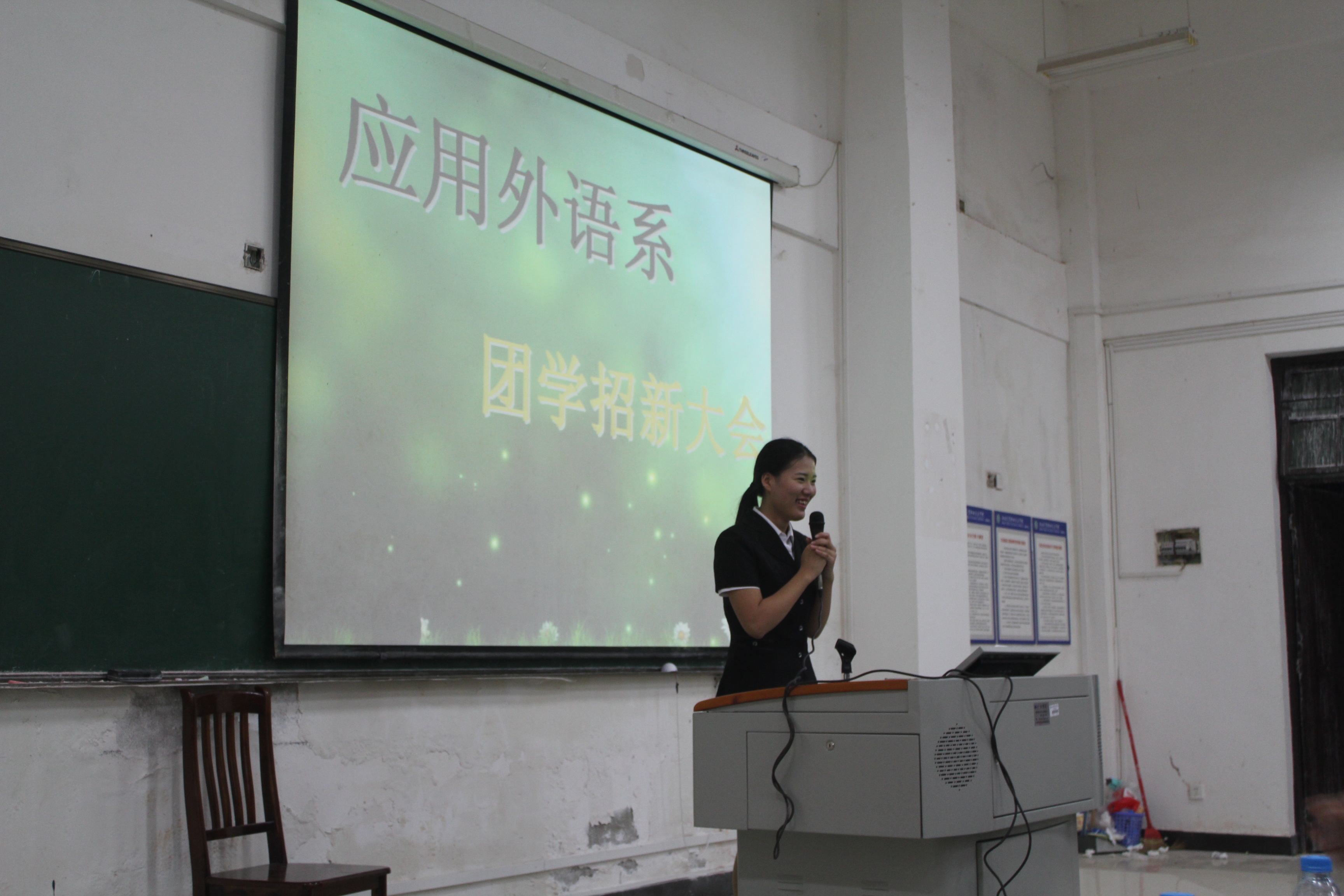 大学的员工会是一个人人向往的组织,它是一个员工自我管理,自我监督的团体。而2014年9月25日晚7:30在1-103教室,应用外语系就举行了一年一度的团学招新晚会!出席此次活动的有应用外语系团总支书记郭蓉佳老师,实习辅导员刘奕显,13级团学干部和14级全体同学!大会开始时,先由员工会主席张浩源为大家介绍了团学的组成是由员工会和社团部组成!接下来,就是团学各部长介绍自己的部门,当团总支副书记郭瑞鹏发言时,他说:“大学不像高中,大学不是人生的前奏,大学就是人生。”得到同学们的强烈共鸣。而社团部部长则给同学们说,只要有能力,有责任感,大学里到处都有你展示的平台!也得到大家的一致认同。团学介绍完毕后,是展示系服的时候。应用外语系的系服不仅代表了外语系这个团体,它更代表了应用外语系做事认真、严谨的风格!这套服装得到了很多同学的好评。会议结束时,同学们纷纷拿入团学的表,那份踊跃显示出了新一代青年的热情和勇敢。在此,祝愿14级团学招新取得圆满的成功,也祝愿同学们都能进入自己理想的部门。迈出第一步,展现完美人生。