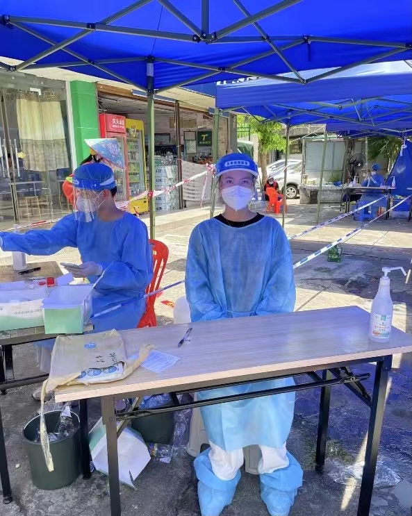 2021级商务英语3班的陈姝妤同学,2022年8月9日至8月11日,在海南省临高县加来镇和浪作业区核酸检测点担任疫情防控志愿者。她主要负责的工作是:提醒群众有序排队、帮助消毒杀菌、帮助行动不便和不会使用智能手机的老人完成检测、及时安抚群众的情绪并耐心解答各种问题等。陈姝妤同学表示通过这次志愿活动,能够促使她展现了当代青年员工面对困难挺身而出的风采,为守护家园和抗击疫情贡献自己的一份力量,并有力的保障核酸检测工作的顺利进行。