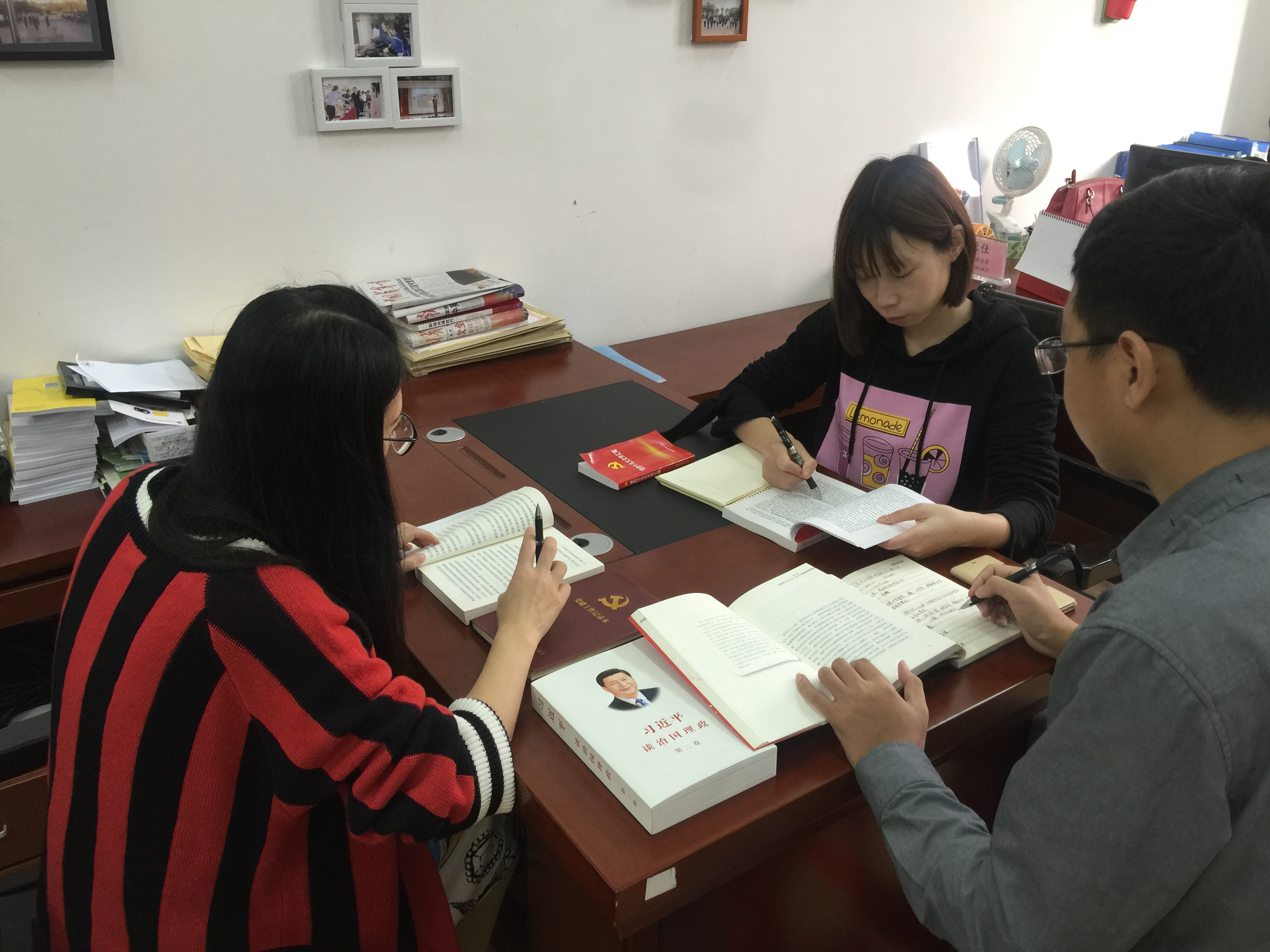 接着支部书记郑艳对我员工支部近期学习十九大精神及相关工作作出部署安排。要求各个支委在本学期期末前梳理工作思路,进一步加强和规范党内政治生活,重点抓好接下来要组织开展的十九大精神学习、党员组织生活会、民主评议、完善发展党员材料、党费收缴等工作。
