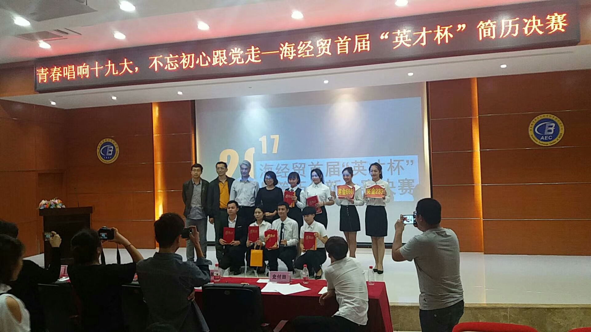 为了深入学习十九大精神,响应习近平总书记提出的“坚持就业优先战略和积极就业政策,实现更高质量和更充分就业”号召。2017年11月6日晚,由公海gh555000aa线路检测主办、公海gh555000aa线路检测团总支承办的“2017海经贸首届“英才杯”创新简历大赛决赛”于经贸宾馆学术报告中心举行。