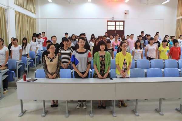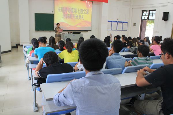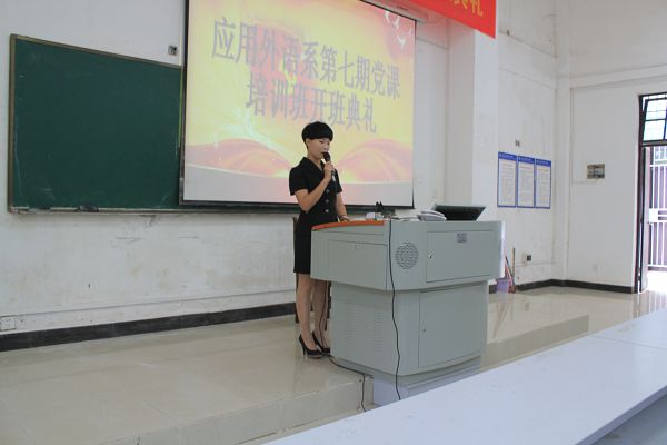 (应用外语系 许丽芳报道)2013年10月15日下午三点整,所有参与党课培训的莘莘学子按时到达党课培训地点进行共产党知识的洗礼。应用外语系党总支朱琳书记和学工办副主任兼员工党支部书记郑艳老师、员工党支部组织兼纪检委员代晓明老师、11级辅导员郭蓉佳老师都早早到达培训地点。