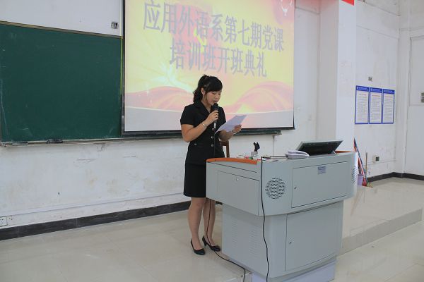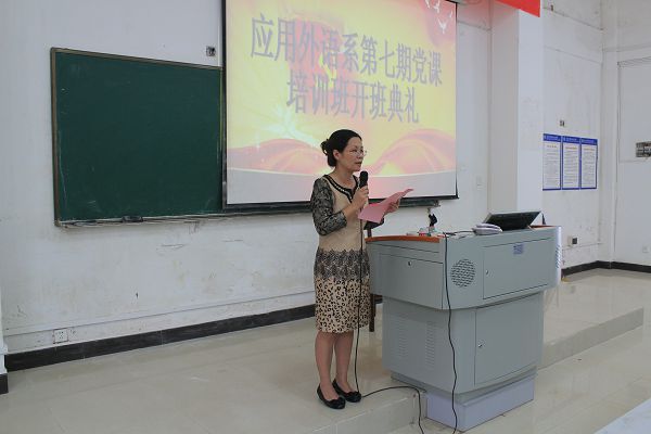 第一次党课培训由应用外语系党总支朱琳书记讲授。朱书记采取向同学们问答的形式,与同学们建立起沟通的桥梁,使同学们很快的融入到党课知识的海洋。