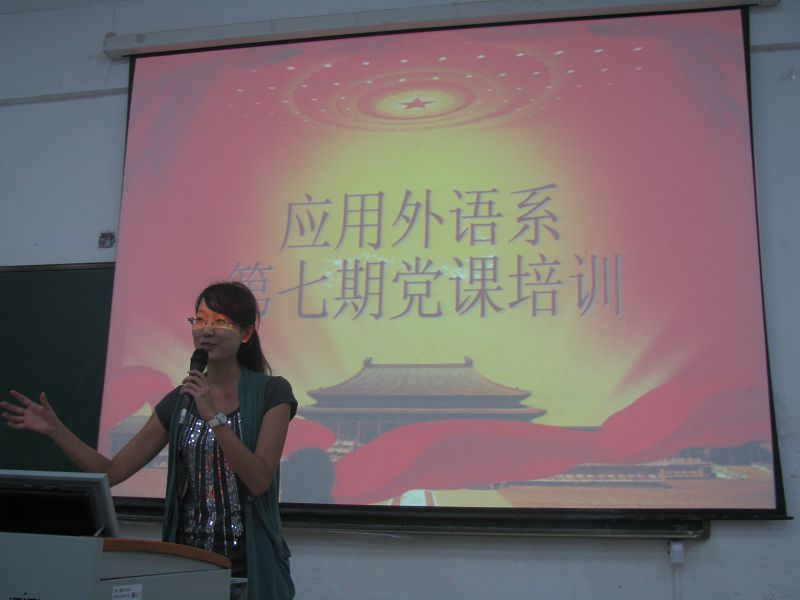 (应用外语系 李莹报道)中国共产党是中华人民共和国的先锋队,代表中国最广大人民的根本利益。2013年10月21日星期一晚,应用外语系在1-103召开了本期第二次党课培训。本次党课由员工党支部组织兼纪检委员代晓明老师主讲。