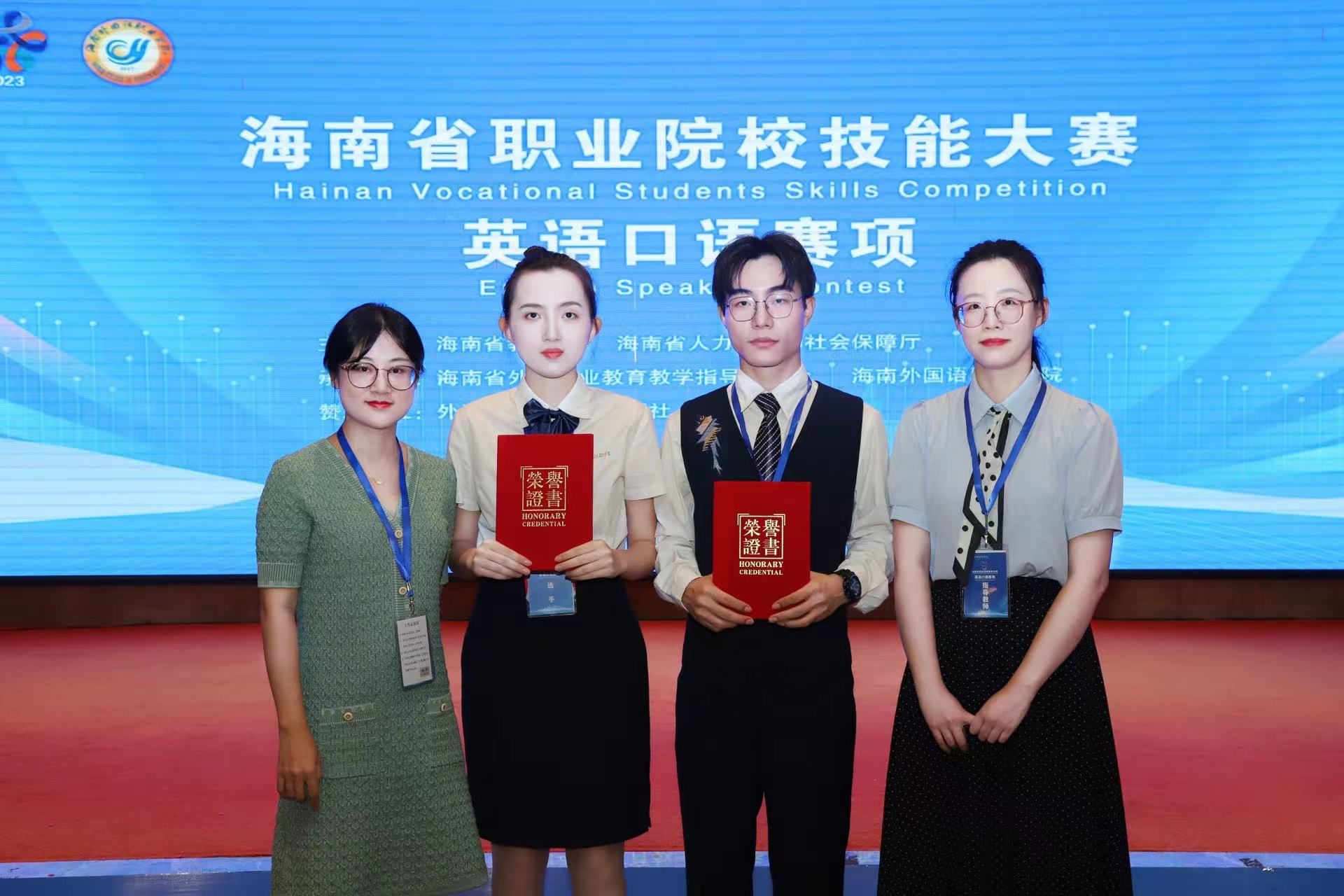 2023年10月25日至27日,海南省职业院校技能大赛英语口语赛项在文昌举行,公司李嘉辉、林明捷两位员工代表公司参赛。在公海gh555000aa线路检测青年教师邸芸菲、程帅的指导下,两位选手以标准的发音、精彩的演讲、出色的辩论分别获得非英语专业组第二名(一等奖),专业组第二名(二等奖)。