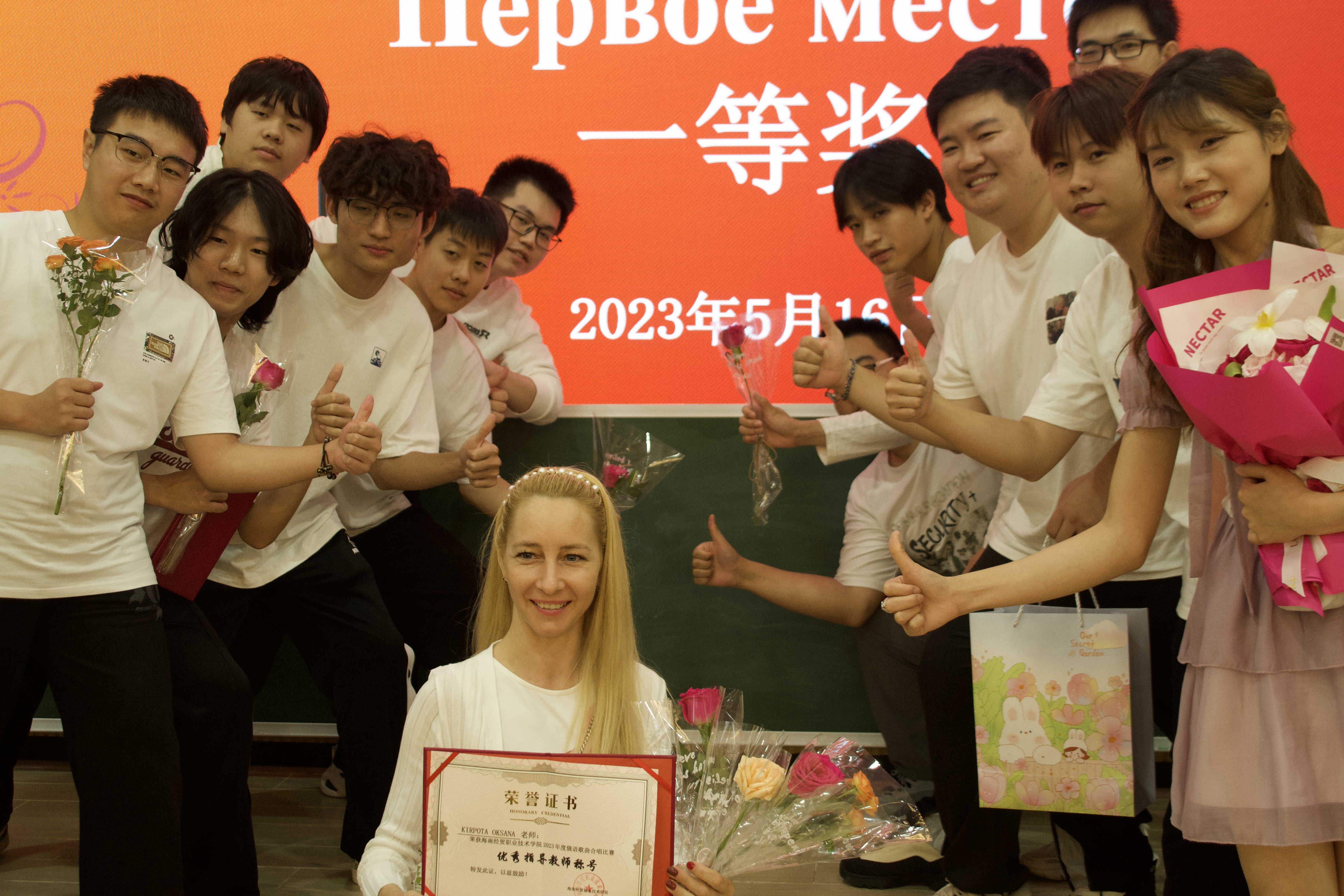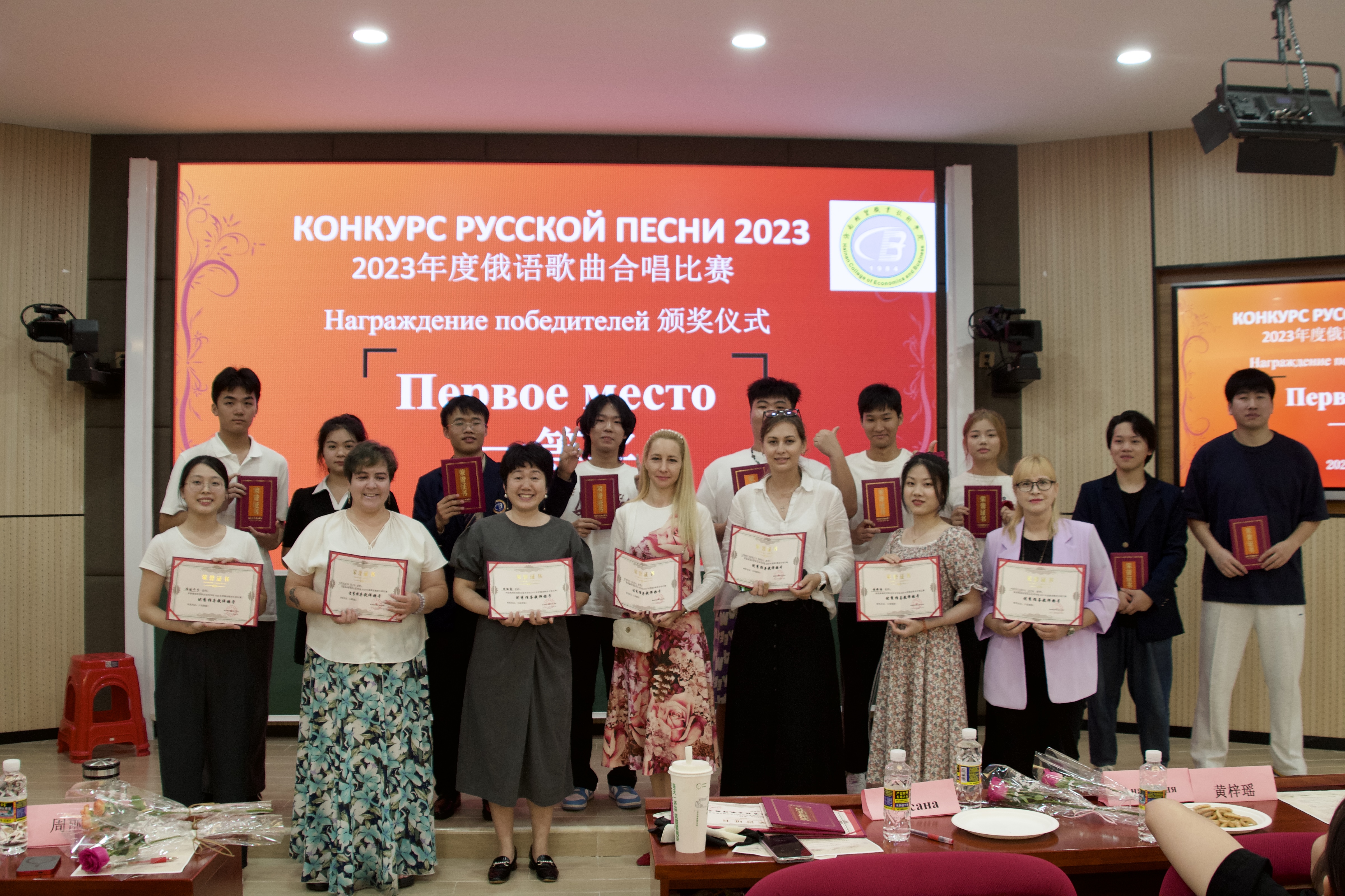 同学们准备充分,表现从容,用手中的麦克风诠释着声音的魅力。他们充分发挥自己的特长,用优美的声音、生动的演绎,让现场的观众沉浸在优美旋律中,现场师生为参赛选手献出阵阵掌声。其间还有省旅游公司的21级旅游外语班员工助阵,带来了动听的歌曲《Миленький ты мой》,获得一致好评。活动尾声,由外教Elina和优秀员工代表激情献唱,带给大家一场完美的视听盛宴。最后由Irina老师为参赛员工们颁发集体荣誉证书,指导老师也都获得了“优秀指导教师称号”。至此,活动圆满结束!