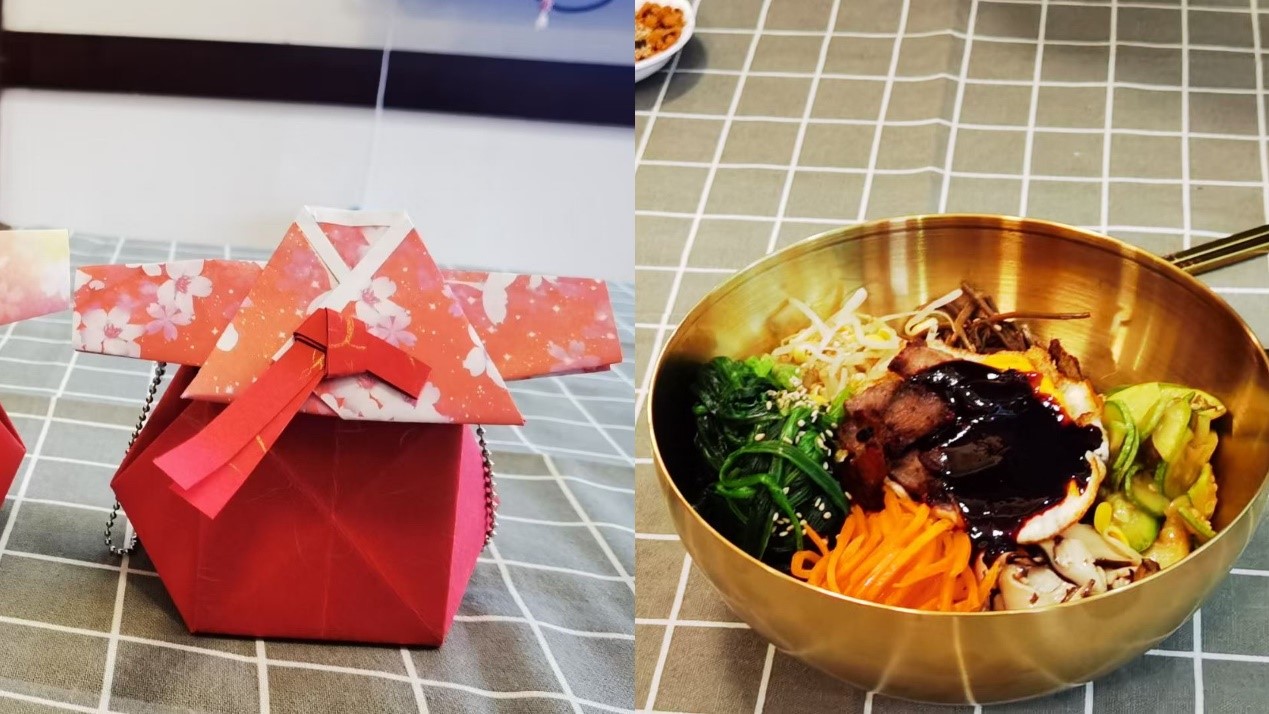 为了增进与其他院校的校际交流,此次“校园开放日”我专业邀请了海口旅游职业公司旅游管理专业的师生和海口经济公司应用韩语专业的师生前来观摩。为展现应用韩语专业的专业特色,让员工们近距离体验韩国文化,本次活动开展了手工折纸(折韩服福袋)、制作韩国特色饮食(制作韩式拌饭)等丰富多彩的活动,师生参与度极高,现场气氛火热。