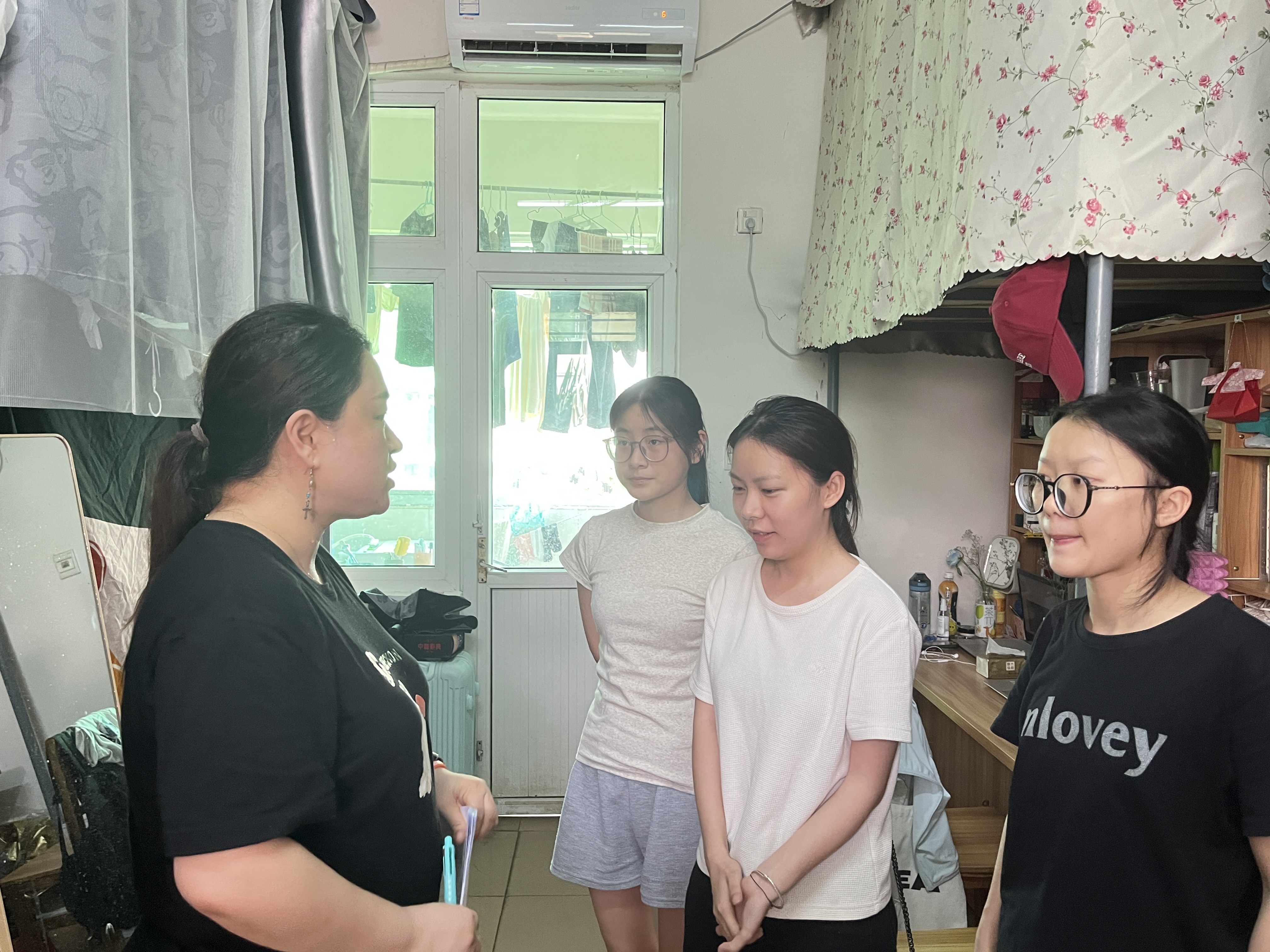 5月23日下午,总支副书记郑艳带领全体辅导员和部分党员、入党积极分子深入员工宿舍,逐一走访每间宿舍,了解员工的学习和生活状态,并对安全文明宿舍建设进行现场检查督导。
