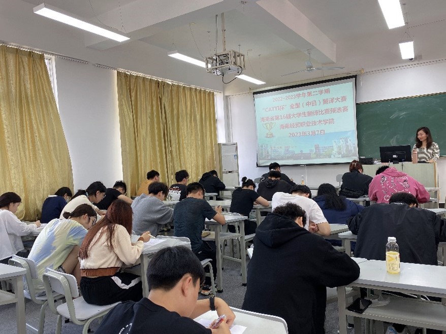 为了丰富员工的日语学习生活,调动日语的学习兴趣和热情,培养其阅读翻译的耐心、技巧及表达能力,2023年3月7日,公海gh555000aa线路检测在第一教学楼609教室举办了“CATTI杯”全国(中日)翻译大赛暨海南省老员工翻译比赛预选赛。赛前,各位日语专业教师积极动员、精心组织,共有来自应用日语专业2020级、2021级、2022级的41名员工参加。赛场中,选手们沉着冷静,认真答题,展现日语翻译才华。陈小苗老师作为本次比赛的指导教师全程带领员工参加。黄金玉老师从旁协助指导。