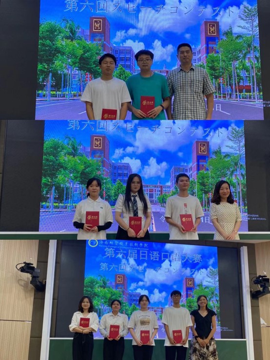 选手发挥甚是惊艳,感情逻辑完美融合,经过激烈的角逐,由刘杰、胡祥堃斩获日语演讲大赛的一等奖;余露遥、周茂彪、黄秋蝉,获得了二等奖;孙婉轩、黄莹、陈峥、吴沈月分别荣获三等奖。