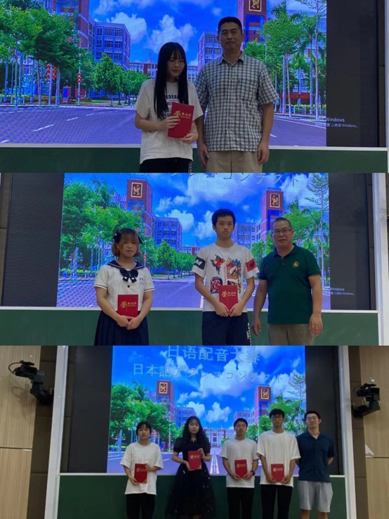 日语配音大赛的一等奖,由练颖欣(作品《スクールアイドル》)获得,二等奖,由徐金鉴,邹家旋获得,三等奖,由王亚静刘杰组合、陈峥、何婷婷获得。