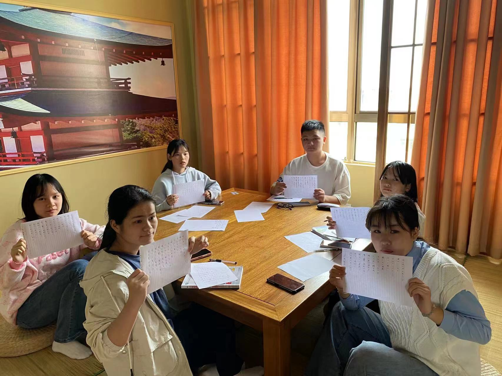 比赛期间,同学们认真专注,尽情在纸上展现出自己的风采。通过本次比赛,我们看到了同学们对于日语学习的热情、对文字的尊重,以及字里行间所表现出的生活态度和人文素养。比赛结束,通过评委老师的评审,最终评选出众多优秀作品。