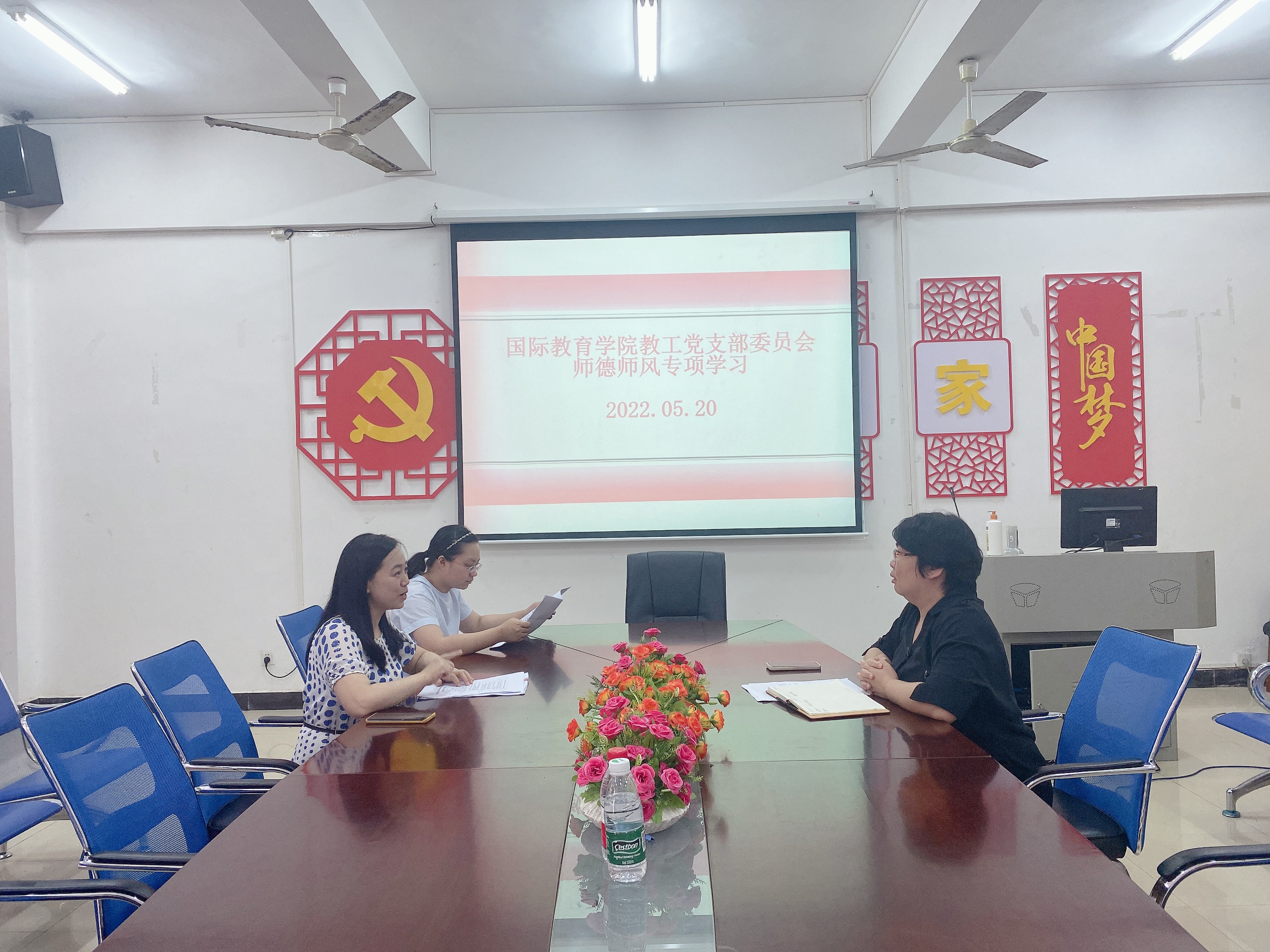 为贯彻落实习近平总书记关于师德师风的重要论述,公司教工党支部委员会于2022年5月20日下午在1-323召开了师德师风专项学习会议。会议由教工党支部书记黎瑛主持,支部委员符雪妮和李红梅参加了会议。