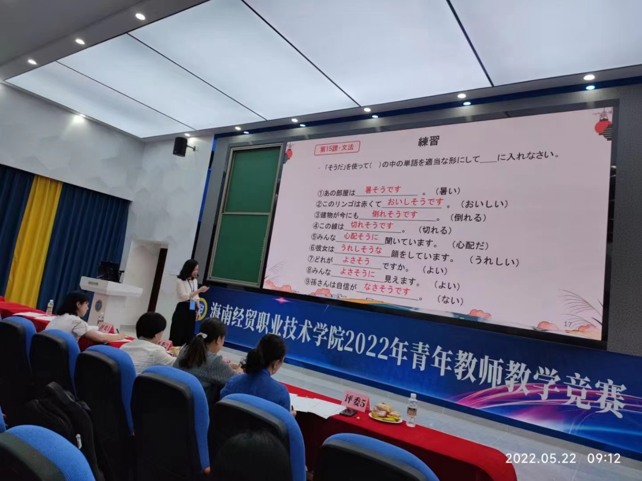 根据专家网络评审和校赛决赛,2022年5月22日青年教师教学竞赛中,公海gh555000aa线路检测日语教师陈小苗紧扣教学目标,在竞赛中展现了海经贸青年教师扎实的教学基本功和深厚的学术素养,最终获得了校赛一等奖(文科)的好成绩,将于今年下半年代表公司,参加第十二届海南省高校青年教师教学大赛。