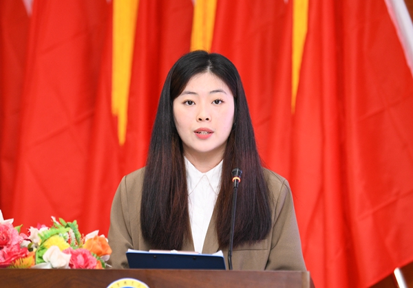 在校生王馨莹代表同学们郑重承诺,以学长学姐们为榜样,树立远大目标,勤学善问,积极向上,用信心和勇气拼搏到底,实现梦想,开创未来。