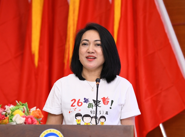 93(5)班班长许飒深情回顾了在母校求学时的青春岁月,对母校及老师们表示由衷的感谢,对公司近年来取得的跨越式发展成果深感喜悦,“海经贸永远是我们心中的红太阳,永远是我们的精神家园。期望母校朝气蓬勃,繁荣昌盛!”。